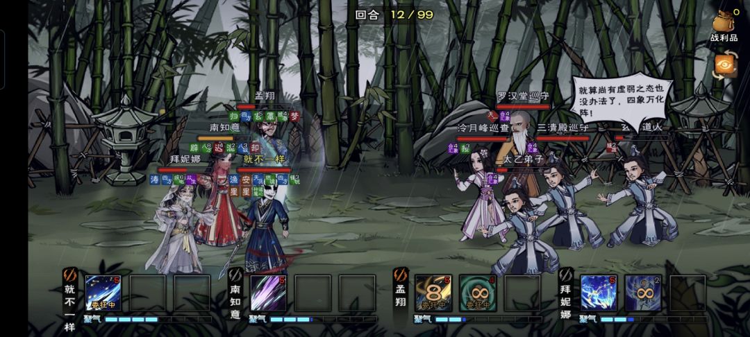 成功拿到秘技,说一下大小星云的心得,主角弹琴烧香上符攻击在8100+,随从只要孟能打点伤害,攻击在9000,其他两个南将近5000,拜6000(都是计算上buff的情况下) 第一点刚开始就是消耗对方阵眼buff就行,全部开技能开打,在阵眼没有或者只有一层buf时,是不会放破气的,所以这个时候看对方血量开始存真元,基本保证所有人真气满格。 第二点最好在回合初让阵眼重启,这样只要对方不招架,大星云一回