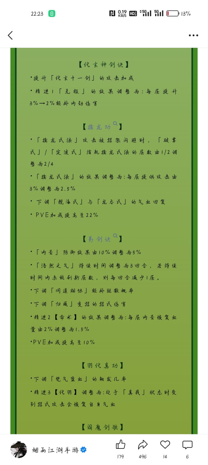 这次擒龙削得很致命主要是机制被削了,破招闪消耗翻倍也就是150真元开局只要被招闪两次直接层数归零后续也很难把被动叠回来了以后擒龙至少得200真元开局才能玩想要玩的舒服,无视凌波得250真元这些都是对低练度萌新致命打击
