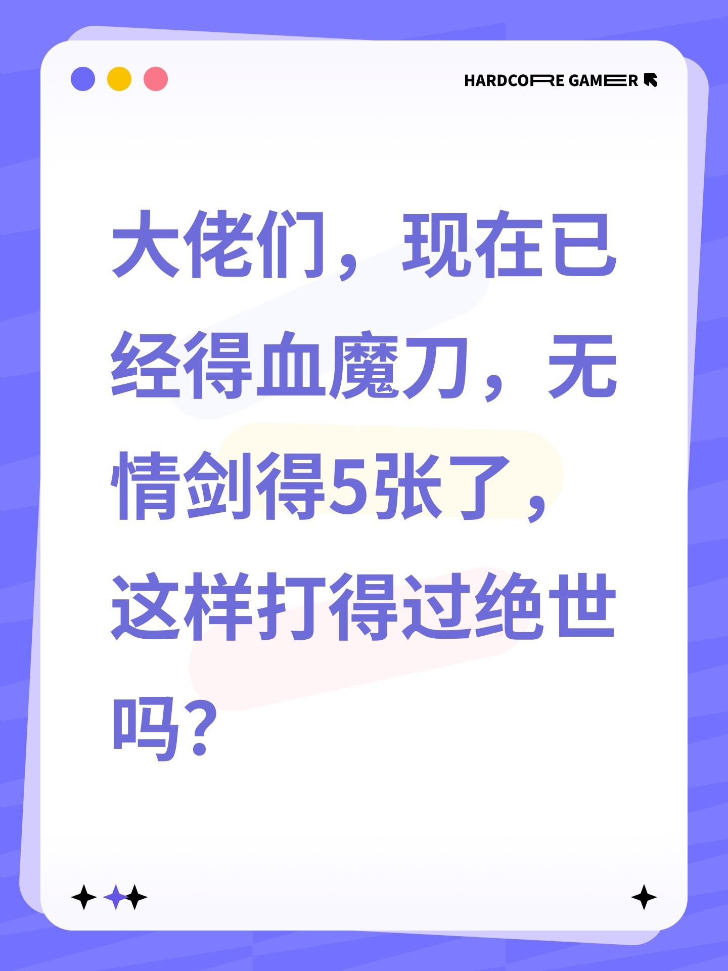 大佬们,现在已经得血魔刀,无情剑得5张了,这样打得过绝世吗?