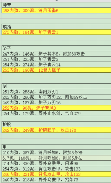 百级更新那么久,老区(1区)序列一直黑的很,极品装难遇,神装遥不可及,90级版本还能月底稳武道前百或者50。百级后,连前200都是奢望。好像一年多没回太乙了,都是不停的在其他门派转悠。这次回太乙,纯攻击的十一剑实在有点弱,也没有好的装备支持玩拳法,想想还是看看有没有内劲装。在我了解和看看,内劲装不能花费过多资源,所以我只看序列的前10件出的紫装(可能会增加到前20件)。精炼序列只看200条。这