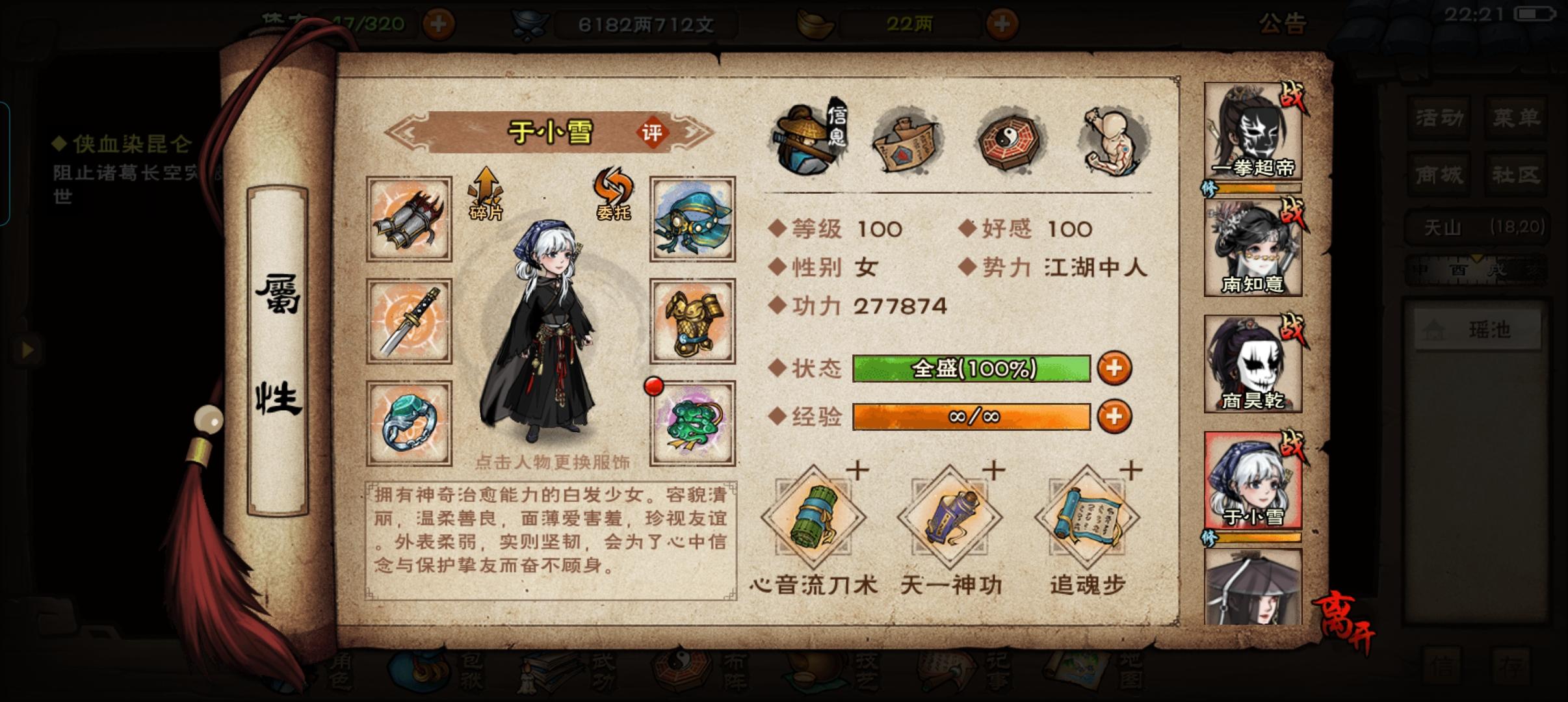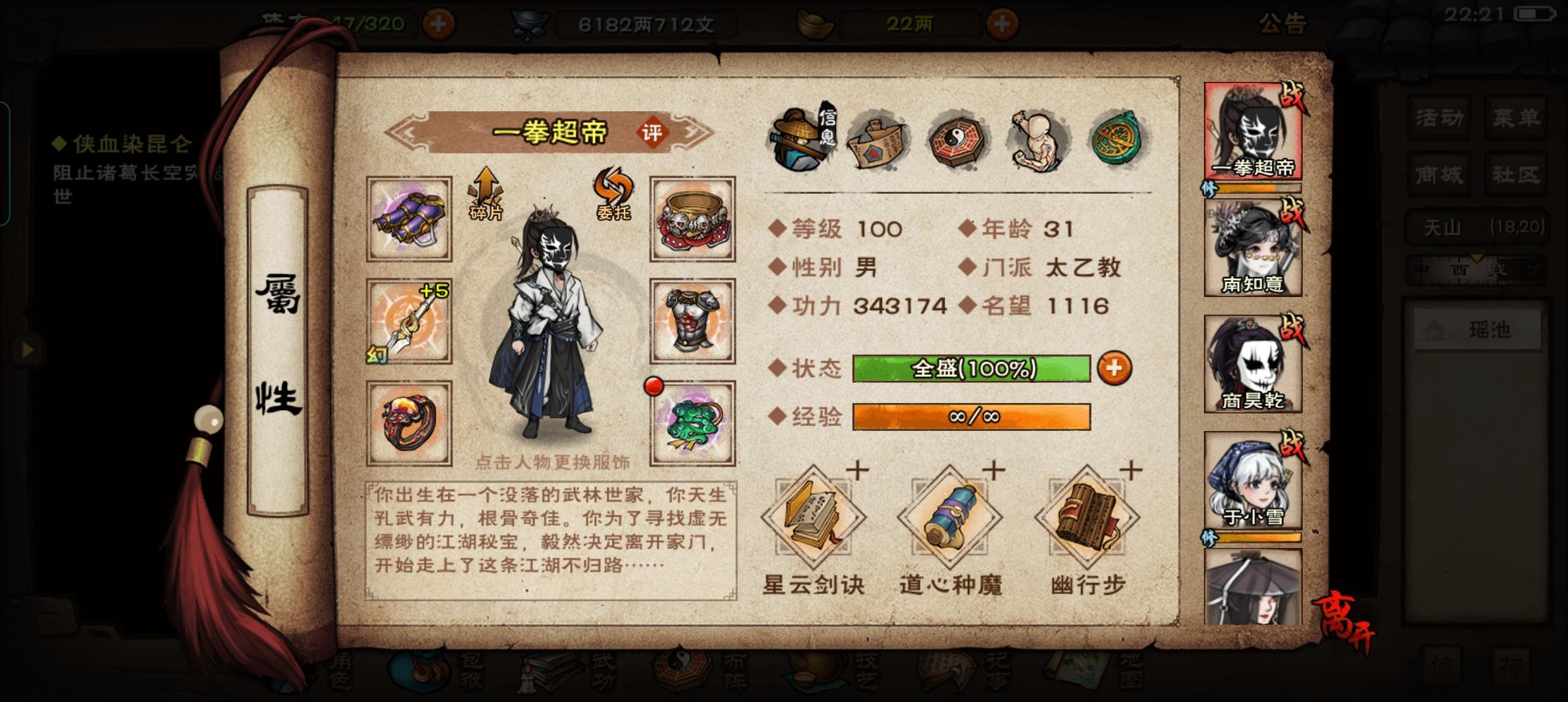 叠到后面三层复仇(36%攻击48%闪避)+无情剑(30~40%攻击)+2层绝情(10%穿甲)+逍遥游(21%闪避+21%命中+12%免伤),还有我们归云决大人超绝期望7免伤+逆天回血总计60%攻击+70%闪避+21%命中+10%穿甲+20%免伤以及归云决百分比回血喜欢我残局一挑四吗?吓哭了