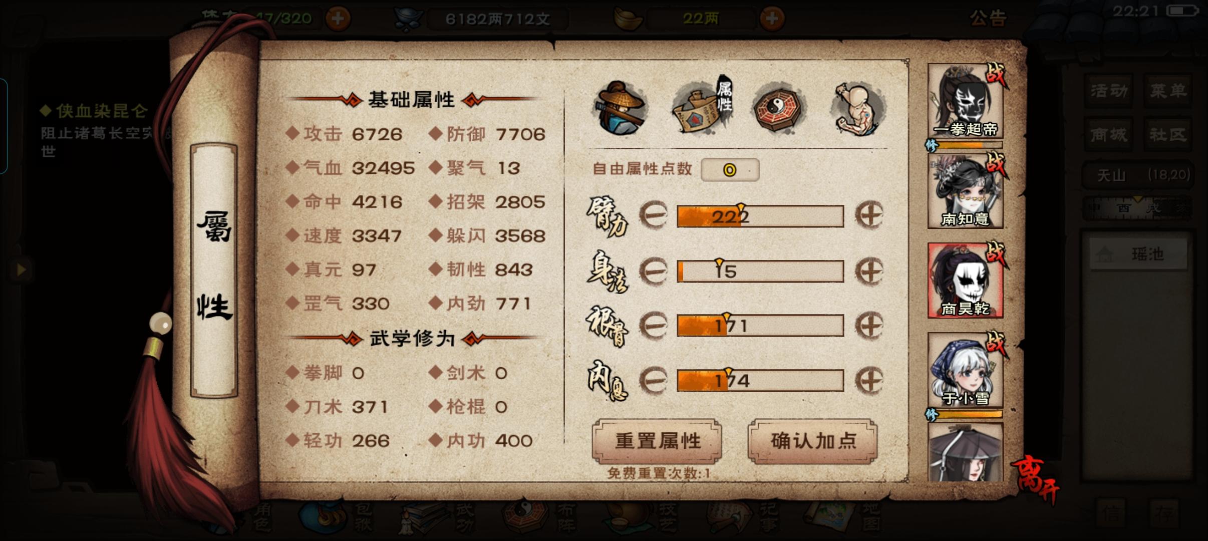 这是一份零氪开荒攻略,书写时间是2025年12月3日。观看时请注意时效性。前情提要:男号,零氪。判门路线天刀——苍狼——太乙——少林——极乐。开局选择天赋【跋山涉水】,其他无所谓,我是输出主所以选择臂力和身法尽量高。进入游戏跟随指引,睡觉之前(26,15)搜索(点击后院,弹出搜索选项)睡醒跟随剧情对话庄主,找陈师傅学武功,顺便对话两次。买酒回来学武功,影响不是很大,后续涉及到一把十级武