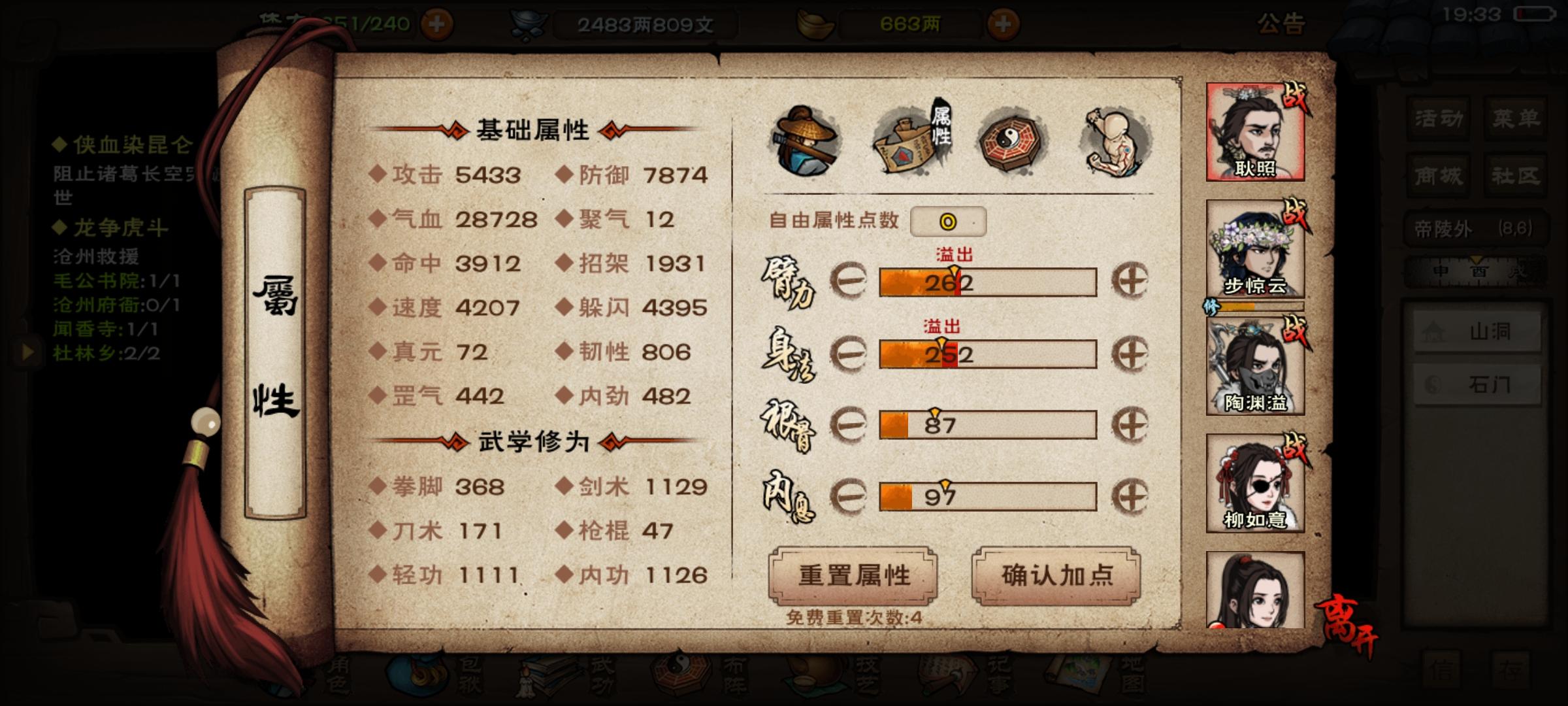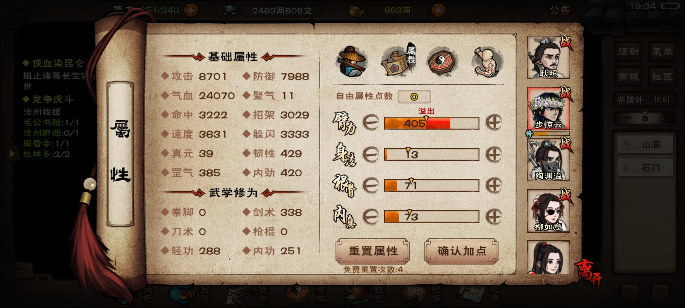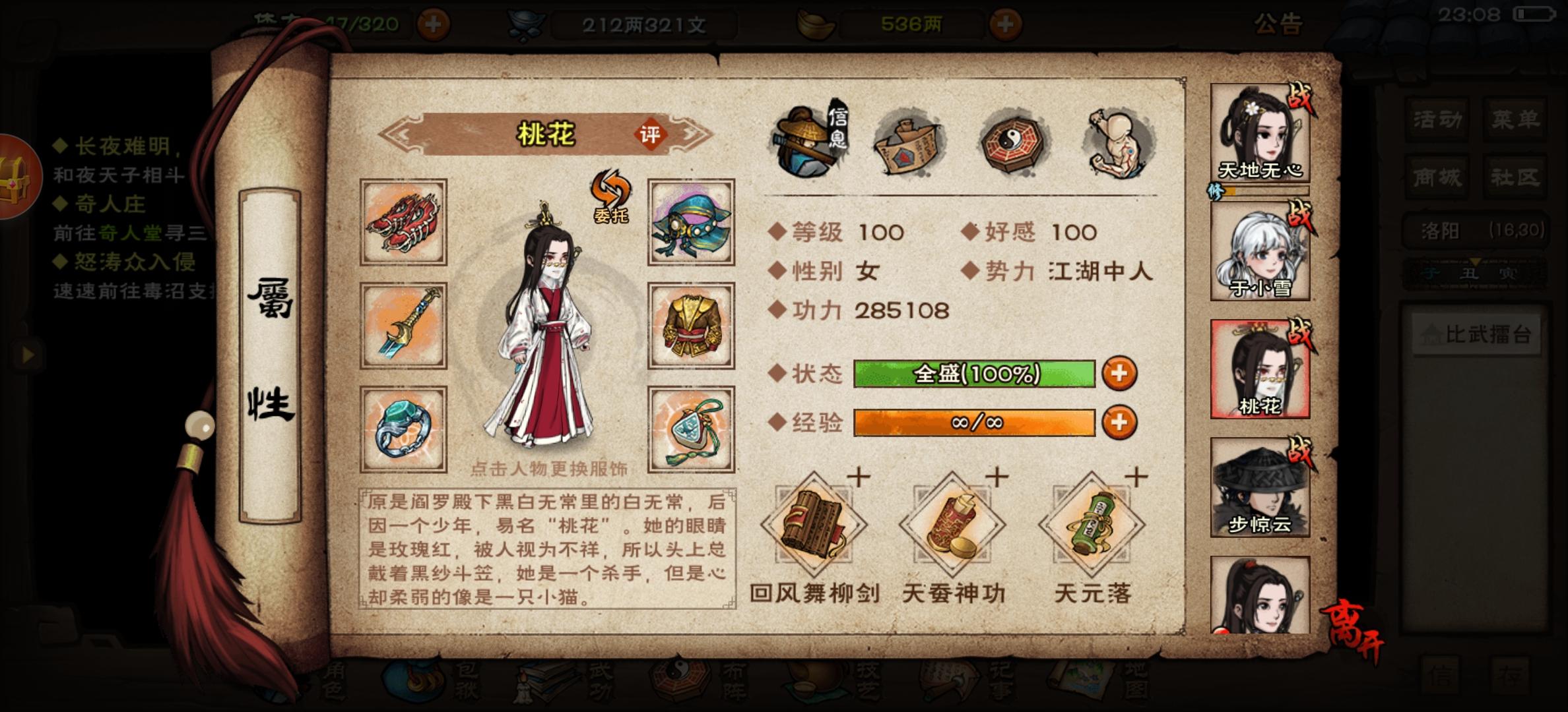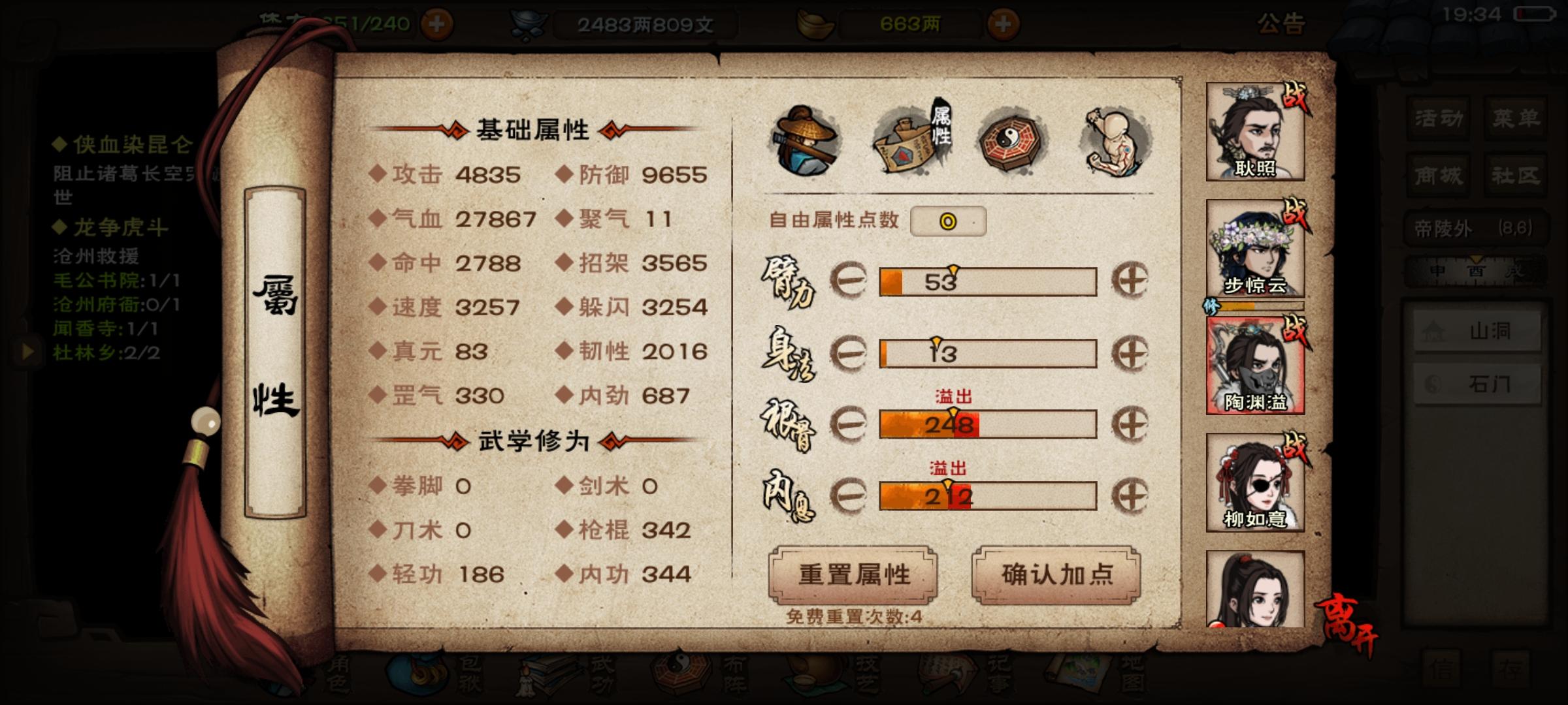 井盖。 舞殇4重,辉月7重,踏月5重, 太阴9重,道心10重, 神丐。 烈阳10重,离火10重,梅花8重 长生3重 商少爷。 太虚10重,乾元9重,梅花10重 僧。 无暇十重,龙象10重,踏浪行10重 青娥7重。 进度:燕王的手下败将!