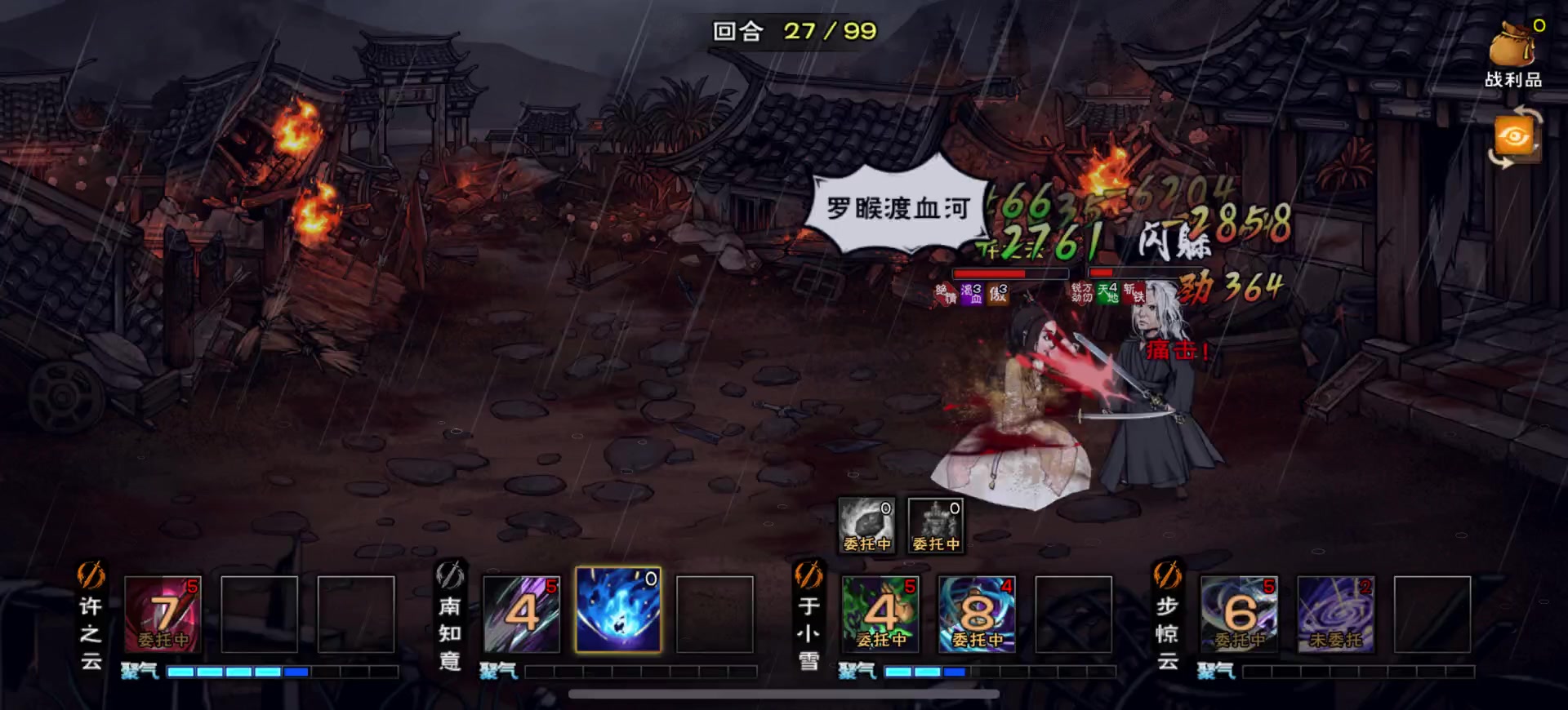 傀儡不能用了,一阶段青娥反伤压血线,二阶段快速清掉紫buff,我是情大于剑,三阶段五毒五层回风暴击,剑阵领域阶段血刀0buff竟然变招了三次,回风暴击,最后阶段血刀一直变招过了