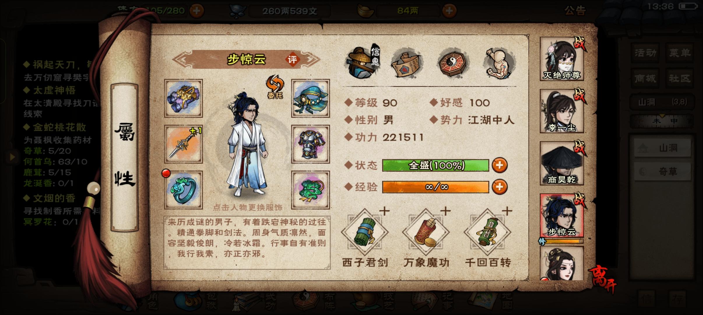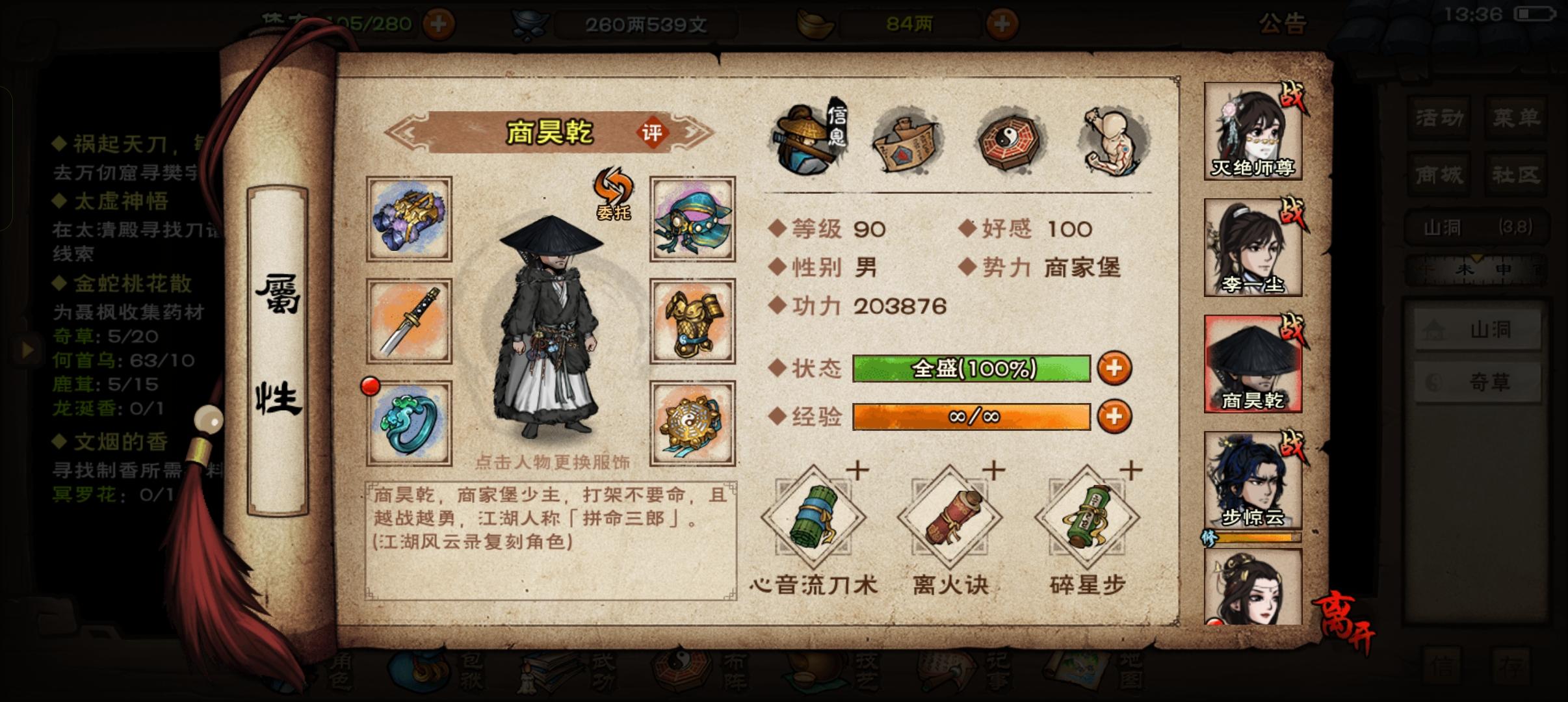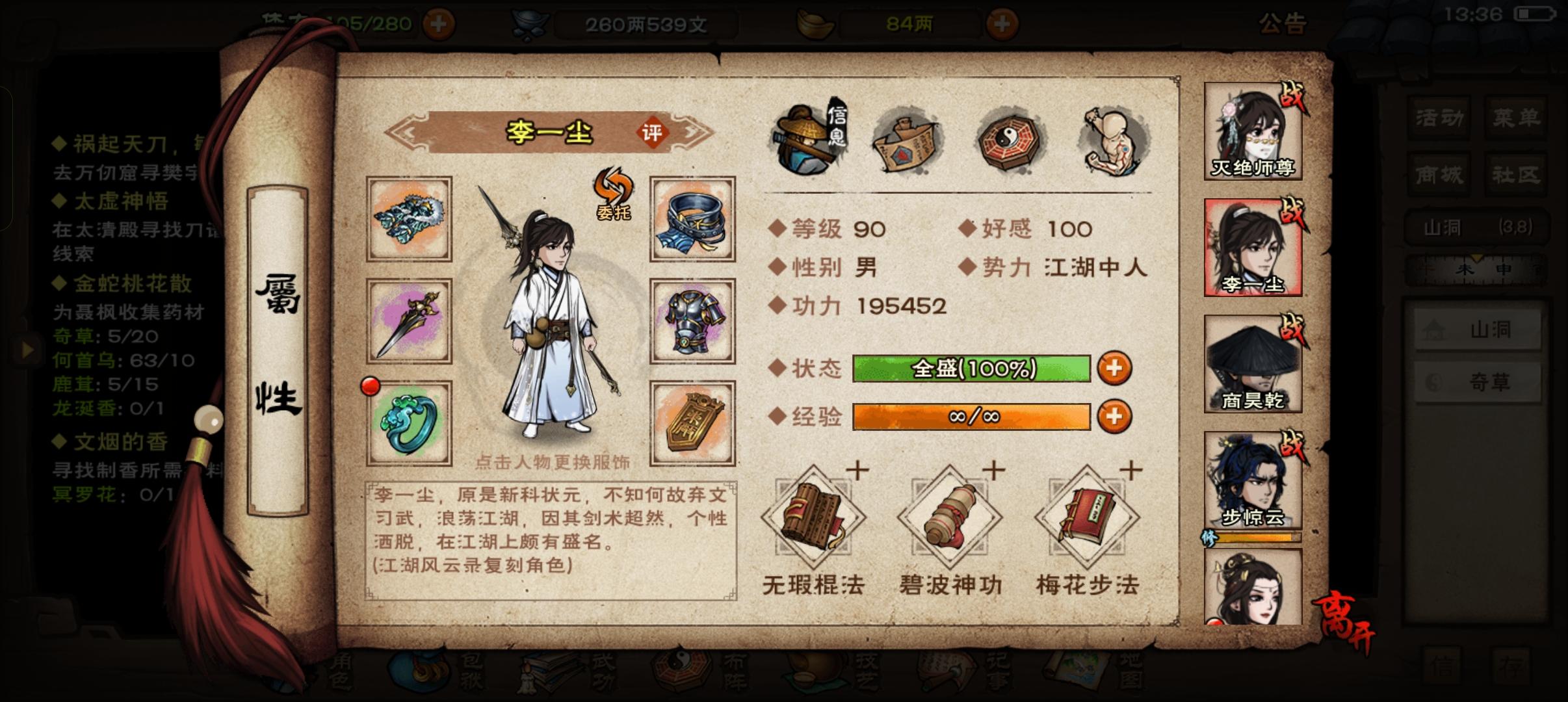 目前还是0氪53级已经能够速刷60野怪啦这两天的进度就是文皇经到达300、六扇门晋升银牌、千机遗迹研究十成、铸剑山庄好感度2600(能买上乘武学了)求教下大佬们,现在我想的提升方向随从轻功梅花步8重主角二阶师傅出师其它的暂时还没想好,求教下大佬还需要做什么#烟雨江湖 #烟雨江湖攻略 #烟雨江湖萌新 #烟雨江湖开荒