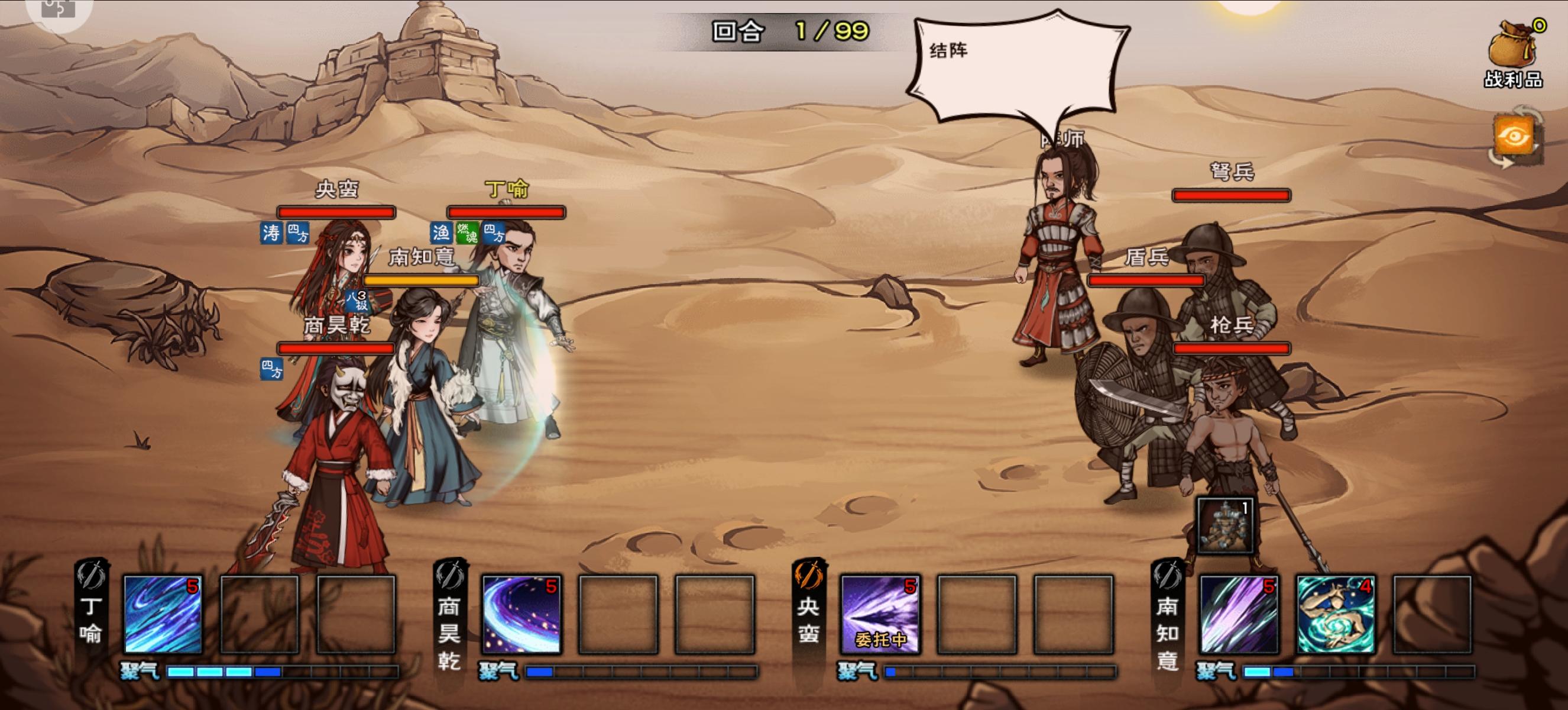第一次打的时候看见就三个入,这不轻松拿捏😋,结果盾兵肉得要死,还有贼高反伤(比离将还高)直接给我太阴主反死了😭😭😭,弩兵的箭虽然没厂狱老一力士那么猛,但一回合一箭,一箭打2000的血,还有流血。。。枪兵纯纯范围高伤害,现在看起来没太大威胁? 所以我应该是三奶打呢还是换一下位置呢🤔(万象还在升级。。。)