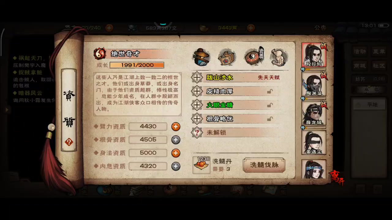 卡在燕王跟寇马,白浪和身空行也要出了,后面转小星云,不考虑换元宝随,以后养个拓跋拳做输出😠