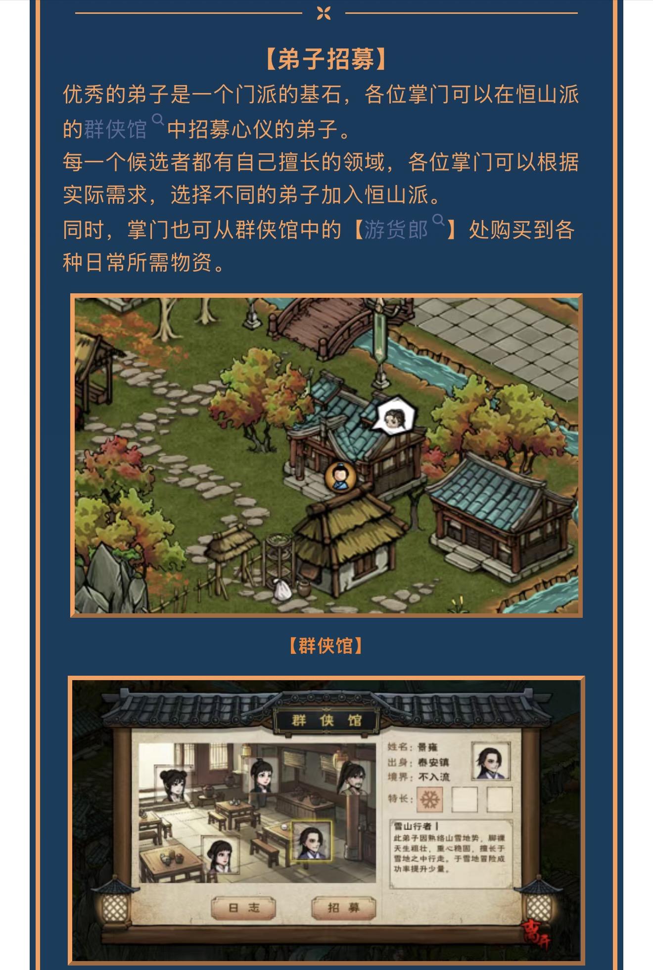 烟雨江湖更新大爆料来啦:1、群侠馆招纳弟子2、烟雨殿派遣经营3、新建筑门派建设4、自创武学与秘技【礼包环节】:新玩家在游戏右上角点开活动,找到寻觅 知己活动,然后点开我是小虾米,想一起薅羊毛的输入我的邀请码【AAFS22】,最多可获得:400元宝+马车票+8万阅历+120体力+100洗髓丹+20顺脉丹!是目前新人最丰厚的礼包。(码字不易,若觉得在下的攻略对您有点帮助,不妨填写我的邀请码~