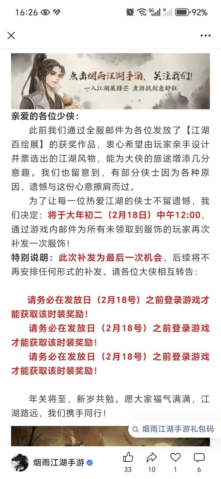 懒鲸给补发一次,记得登录哦