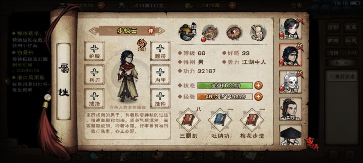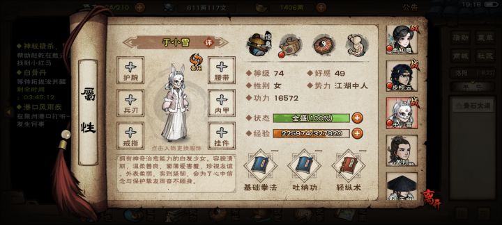 真得有个5,6年没好好玩了,也就刚出那会玩的最爽,玩的时候也是一直走错路,刚玩没多久苍狼出了判门去苍狼,后来倒是也把少林秘籍补全了,那会才高中,学业加2小时未成年限制实在玩不动,之后就是个半退游状态(国庆和过年上线领领奖励),夜无幽上线的时候看着很强,养成之后似乎一直在拖队伍后腿,苍狼时期队伍将近80万战力一点打不过枯骨(被压着打),后来看着出新门派了又胡乱判门,现