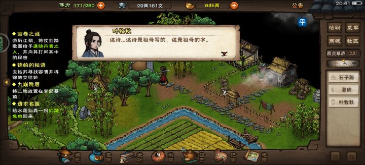 虽然很麻烦 但是文皇经的故事线意外的还不错,至少能有耐心看得下去。烟雨江湖的不少支线剧情做的有点东西的,所以我挺好奇。开服老登们到底是怎么在一堆阴间点位里找到任务点和触发任务的。难怪这刁游戏这么多年依旧能打。我甚至过年都没忍住氪了点,目前玩过的所有武侠游戏里,从单机到联机,烟雨确实都是独一档。
