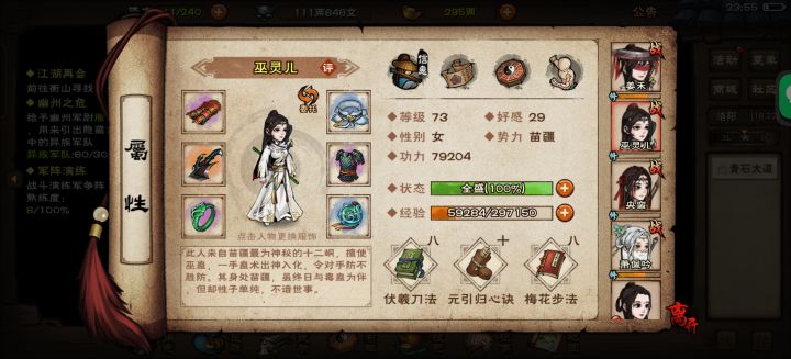 目前阵容敲定啦就是如图所示,央蛮主T,萧佩吟,苏念雪和女剑主三剑,等南返场买南传功替换央蛮主T,然后央蛮再传功替换苏苏(妹妹队天下第一)然后现在就是求教大佬几个问题1:经验丹怎么获得呢,除了商城卖的35一个的(太贵了太贵了)2:这样安排的话,萧佩吟,苏念雪和央蛮的内功以及加点怎么分配呢祝各位大佬们新年快乐,恭喜发财另外我在31区,有没有一起玩的