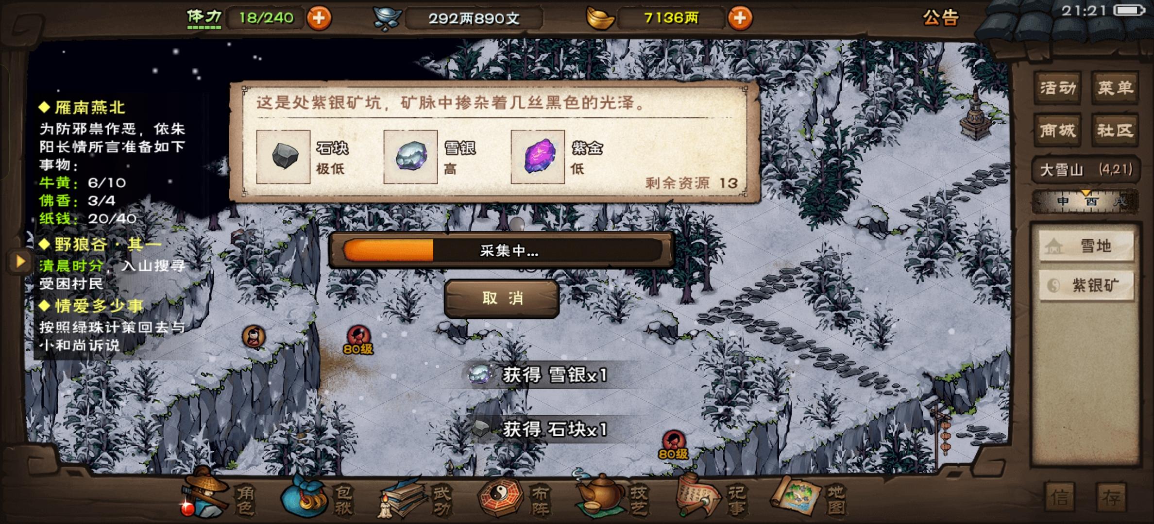 前言:碧波神功和碎星步,凌波微步和太玄神功一般不考虑。一般篇主角武学一直用门派的(进阶内功用浑天气功),轻功早点学到雁行功9重(优先)和水上漂9重一般刀法建议打洛阳左上角的洛龙村的周石天(6,3)掉落的流云刀法。剑法→孙邪的点墨剑法枪棍→用武馆的齐眉棍法拳脚→武馆的太祖拳法(或更强的铁砂掌,不过铁砂掌无法传功,需要慎重)内功先每人(判门主角除外)一本气引术(3重满)和吐纳功(3重满)