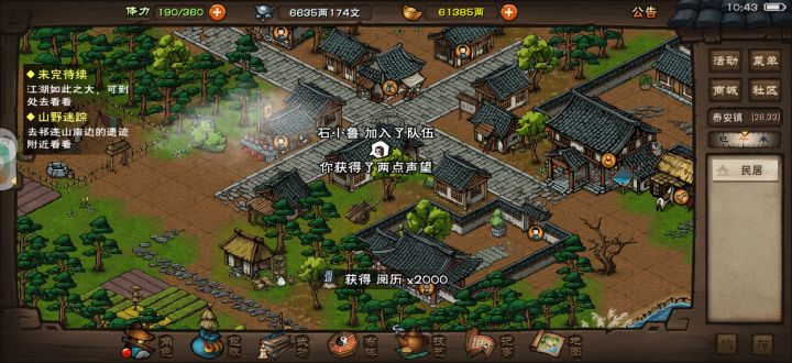 重点:❗❗烟雨钱和元宝一样不能回档❗❗(1)首先,进入『庙会』的入口在洛阳 10.18马车夫处,活动大使有庙会消息(2)地图内隐藏烟雨钱:①钓鱼🎣:福安桥上钓鱼,概率出锦鲤和烟雨钱。 ②搜索庙会地图方位 (10.6)(7.8) (15.5) (22.5) 有烟雨钱(3)进行庙会活动,和伙伴们一起吃年夜饭可获得祈愿牌,进行任务获得体力以及烟雨钱(4)算命先生,抽福签给10烟雨钱。(5)烟