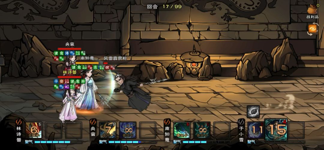 成就要求不能使用九幽的秘籍,但可以自己磕药。 这个枪豪暴走是选中一列有2人的穿葫芦,基本上小雪和央蛮扛不下。 但运气来了挡都挡不住,央蛮闪躲过去了。 那就不客气了,直接达成成就。另外,我试过血刀,完全扛不住穿葫芦。