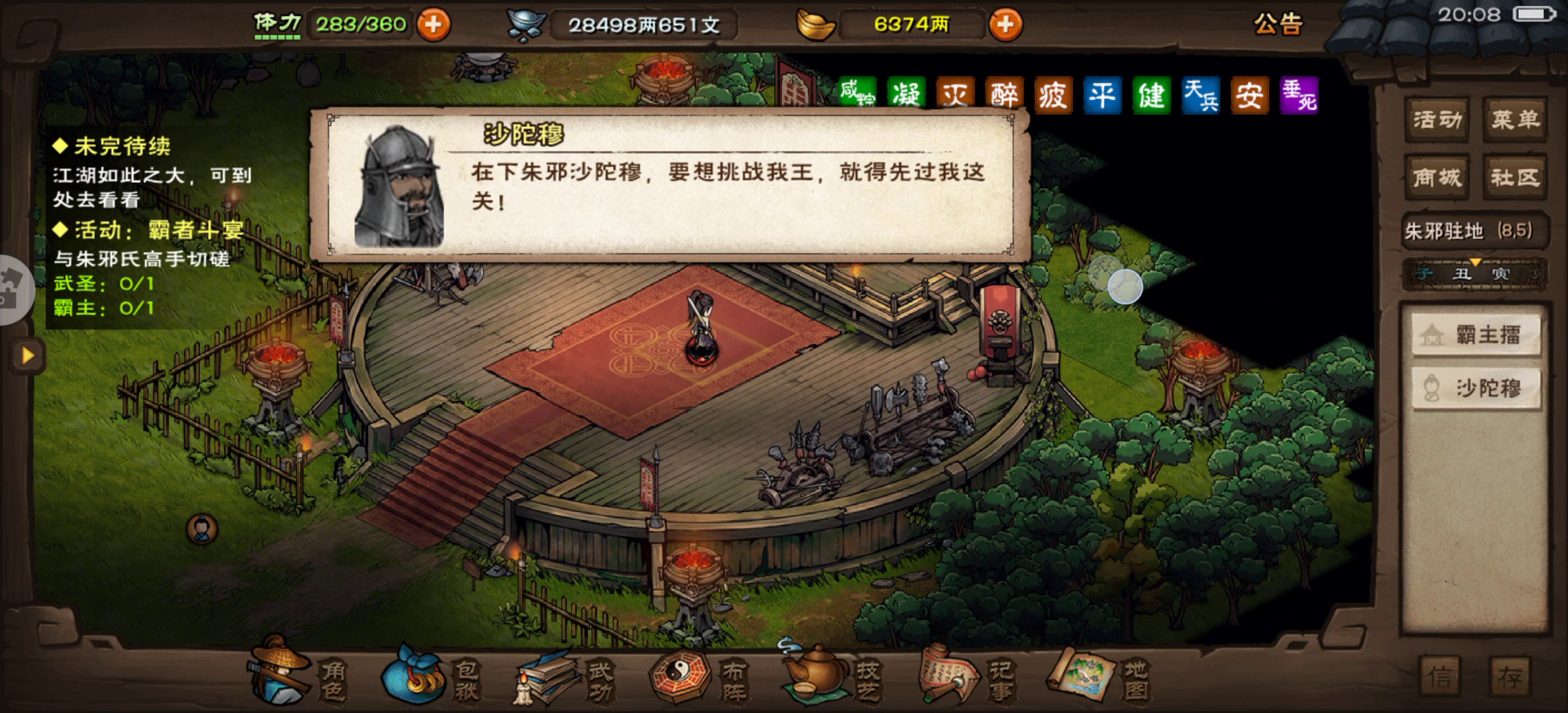 女六惊险1回合小沙,差点没过[表情_可爱][表情_可爱][表情_可爱] 终于可以速战霸主了,可以把十几个随从武学都回收了[表情_星星眼][表情_星星眼][表情_星星眼]