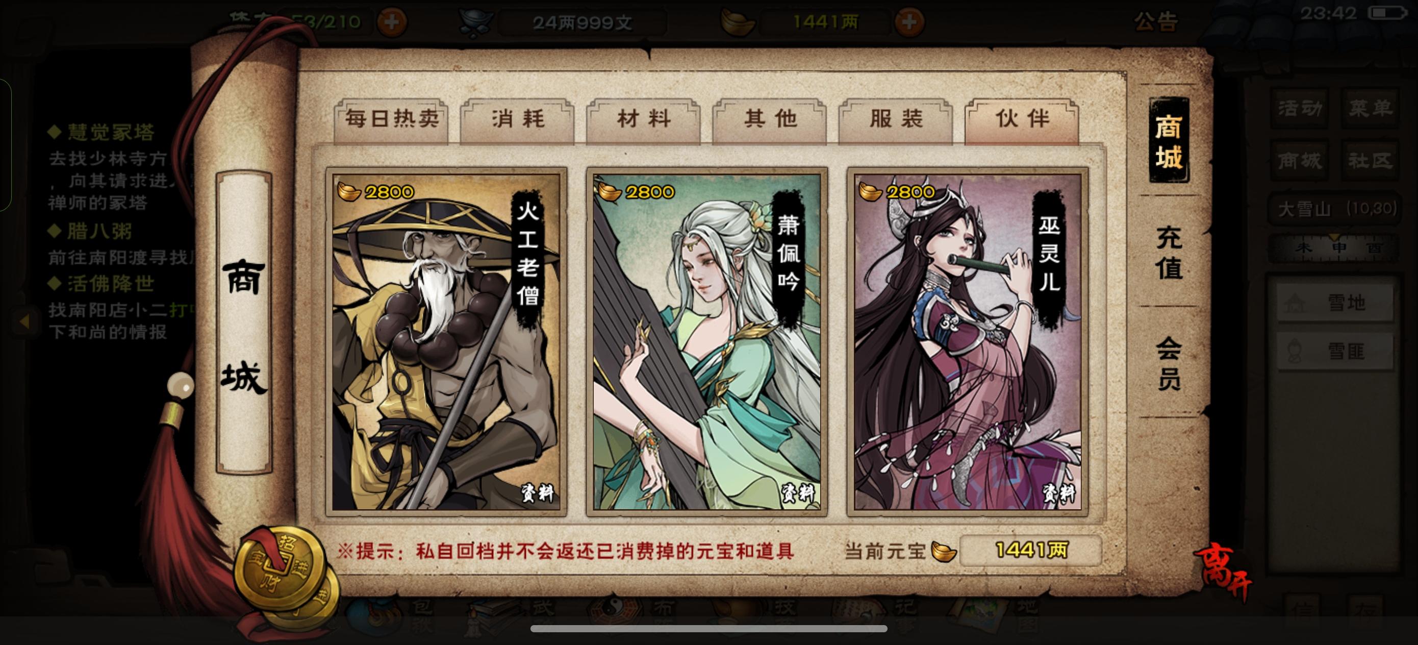 65级 身上107两银子 优先买哪个功法或者技艺?六扇门的天刀 商 柳 鹏的配置 6000多元宝 应该买哪些随从?谢谢各位大佬