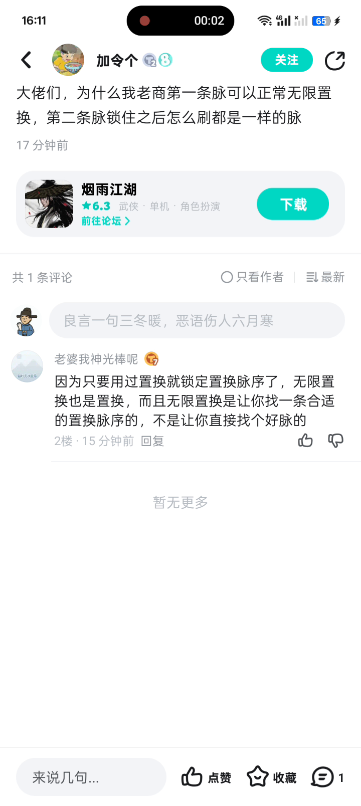 pve算彻底毕业,主角用高配的输出套反而扛不住,切淘汰下来的破烂免伤套就过了,主要是碎片问题,回血碎片还是太超模了。 显然还有提升空间,比如不叛门,主角脉(目前只有金仙神力),月蓉脉(目前鬼,切混元的血量更高),主角加点(飘雪334身法),合道(目前是至阳),装备,武学搭配等等。不过这玩意以后就懒得sl了,反正东西也拿完了,点个50血基本够挂机过。