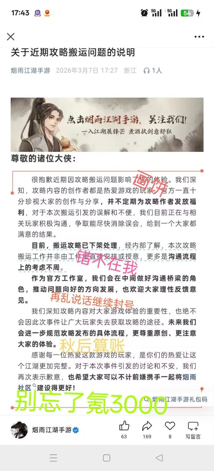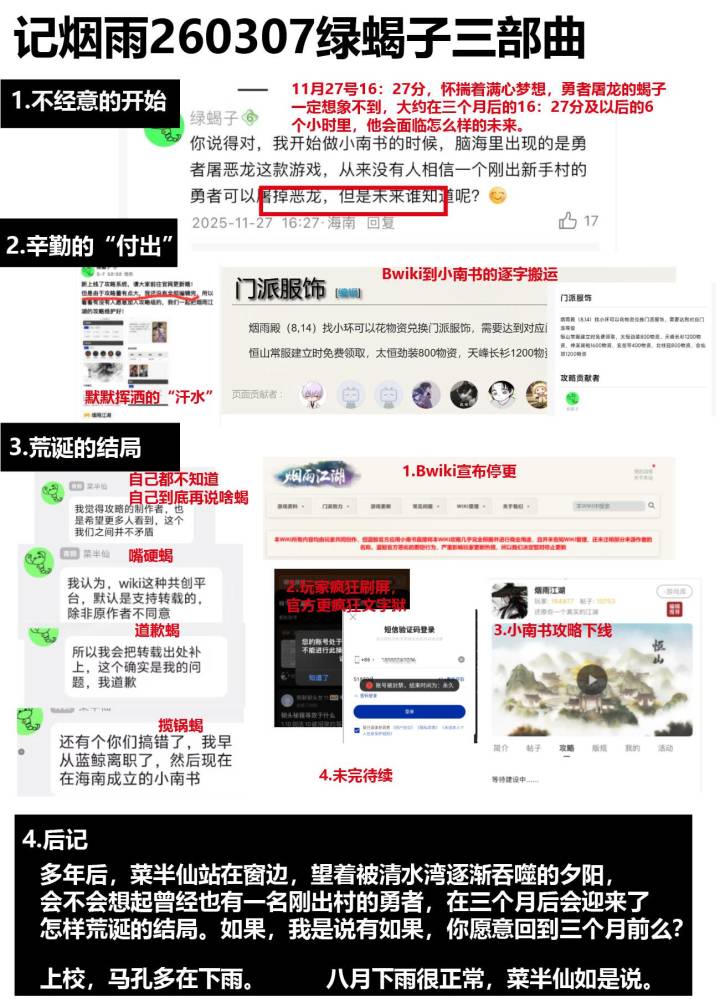 申明:本篇只说下叛门路线和一部分值得注意的点,更多细节需要看“烟雨江湖wiki”(新人必看,上B站或者用浏览器搜)。千机遗迹活动限时开启期间,通关3次后,第4天通关进阶关卡,拿原型傀儡80-90级甚至一些百级副本,主坦推荐无暇棍法主角升百级破止需要剑修、内修、轻修要各1000。随从升百级需要天赋开3槽,经脉12正经全通。判门前可以多学点门派的套路,内功和轻功,后面卡800内修时,把随从内