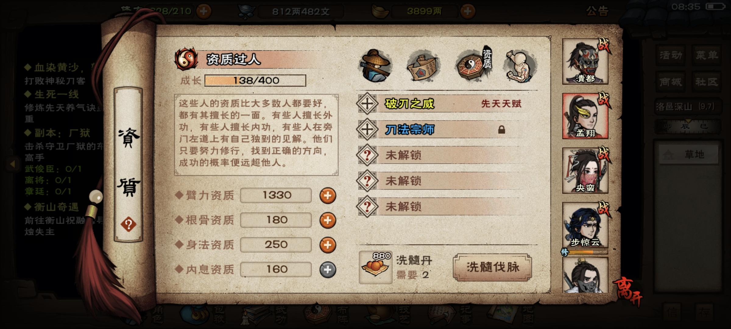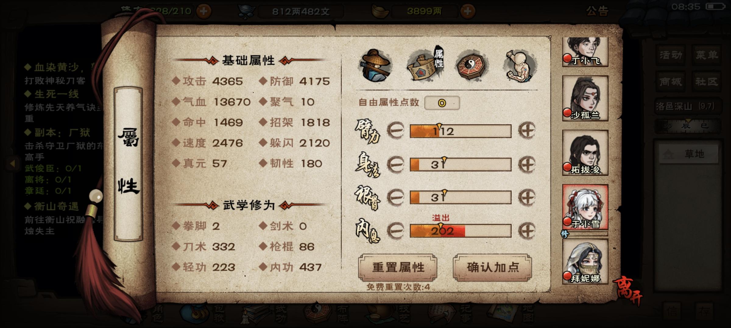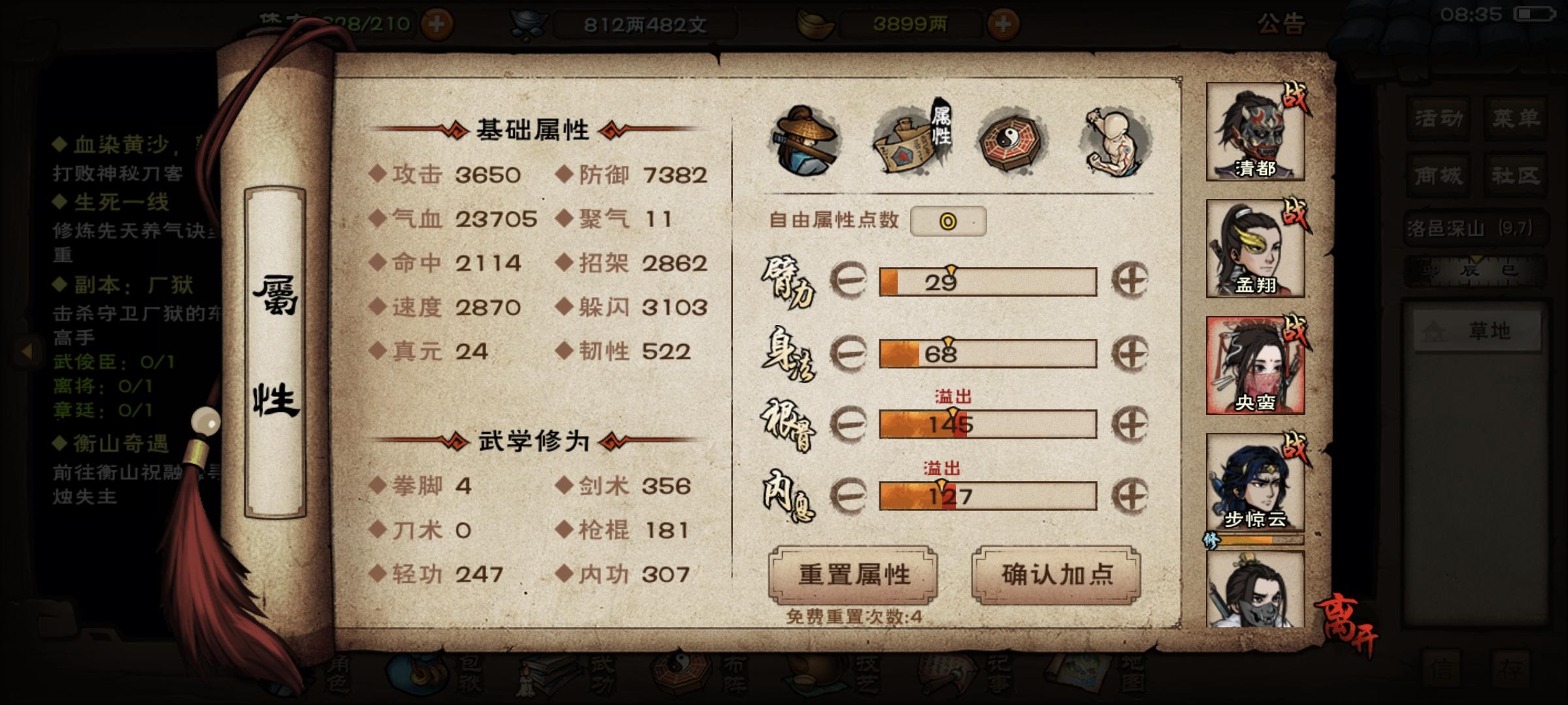 主力角色孟太虚刀,央蛮无暇棍,步剑,还有于小雪刀(用的不多,和央蛮换着用的),主角是太阴拳 求大佬指点武功怎么搭配,现在在打厂狱,之前的武功该有的都有了 孟太虚,龙象,身空行,20万战力 央无暇,乾元青蛾天一,天元,20万战力 步云十剑,血魔经,月下飞天(没有镇派给他了,不知道给他学什么),19万战力 小雪破锋八斩,长生诀,幽行步,裸装15万战力 现在多了万象,琉璃体,五毒,玄阴,不知