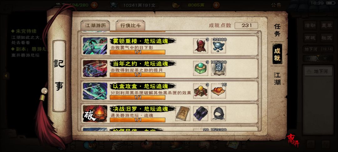 烟雨江湖碧游总教通关及成就攻略