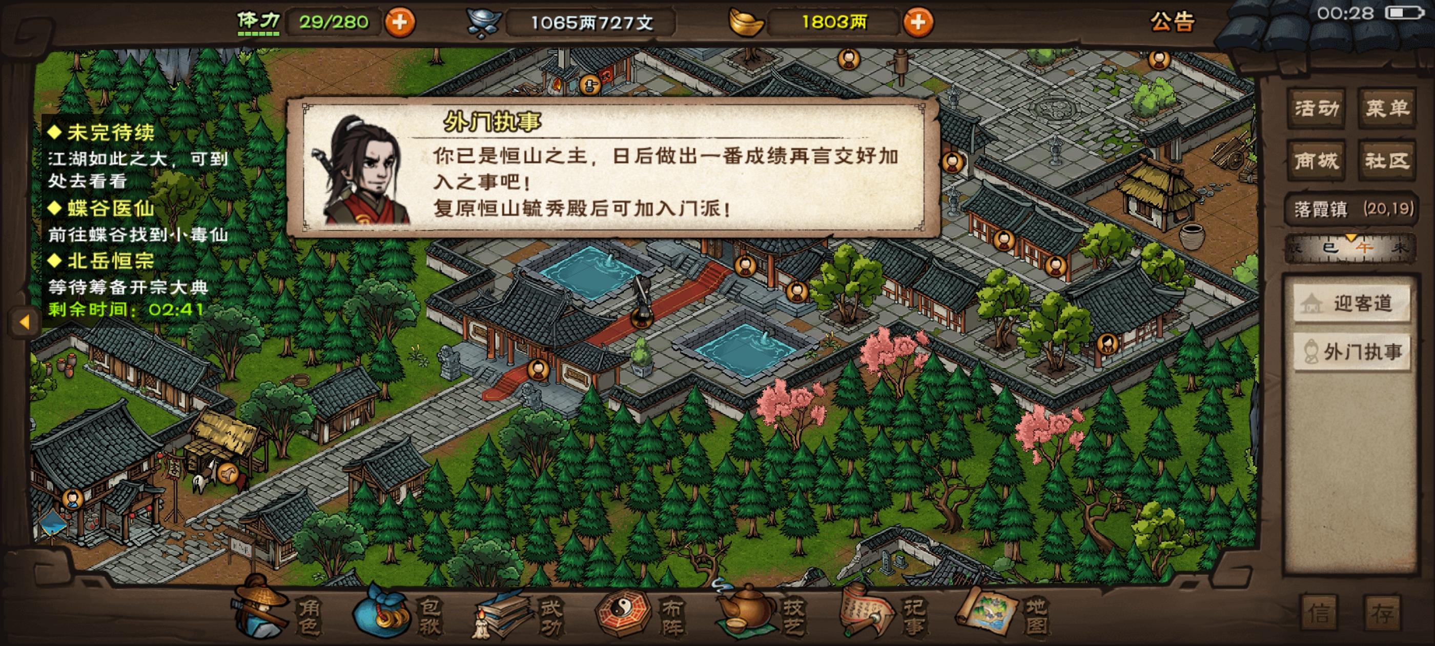1,必须男号开局,开荒体验最佳,天赋选择跋山涉水2,过完新手村任务直接去落霞镇拜师天刀(无他,伤害最高)。随后判门路线天刀-苍狼-太乙(拿完门派的核心秘技再判门)3,主角迅速买轻功雁行功和水上漂,雁行功快速升到9重4,清空文房四宝,为第二天拿文皇经做准备(文皇经大大加强你的开荒体验)5,升到20级就可以打聚仙寨副本,拿浑天内功6,拿点墨,铁砂掌直接拉到最高重等级7,有了以上这些功法基本