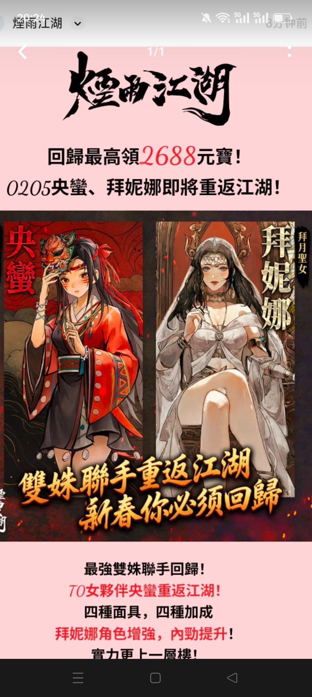 首先是最近加强的老角色,尤其是月蓉萧佩吟这种常驻,可能萧的数值真的会从测试服走出来,目的是为了年前宰一波玩家的钱包,好让新角色逼氪。其次,看外服反厂的央蛮拜妮娜来看,新角色必是漂亮的女随从,因为江湖就是情义二字的缩写,而情字是大多数人喜欢的,🐋发现了规律那么必会选择漂亮的女角色作为摇钱树,央蛮南知意是极好的例子。并且,这个随从不仅好看,剧情也会甜甜的,(参考巫灵儿支线,🐋晓得你喜欢什么~)数值还