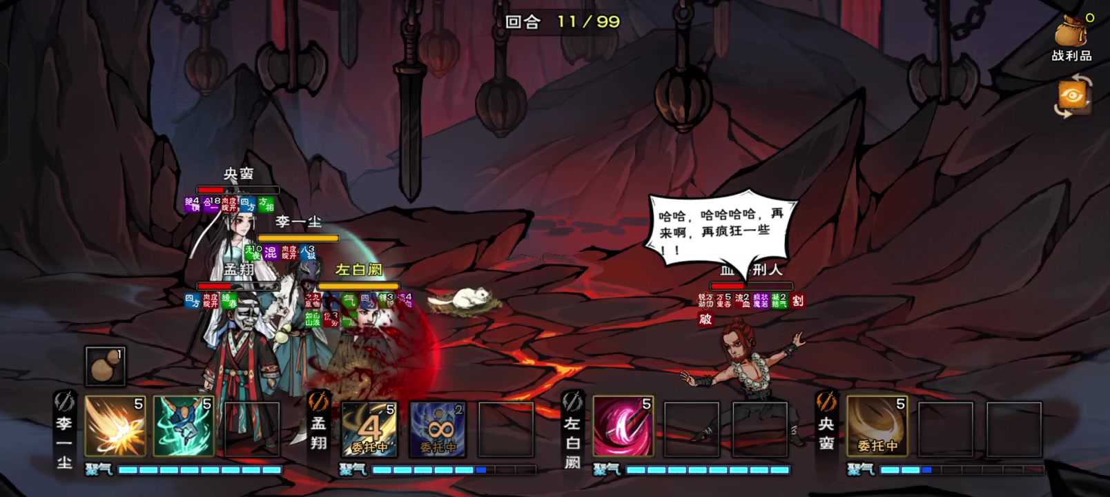 看了攻略然后自己又试验了好多次,最后完全拖不到小李子10层伤,一不做二不休直接肝,结果差点没打过去……真的,输出不够真不容易打。最后天蚕逃课……….反正机制摸索出来了,后面鱼肠剑还远么?