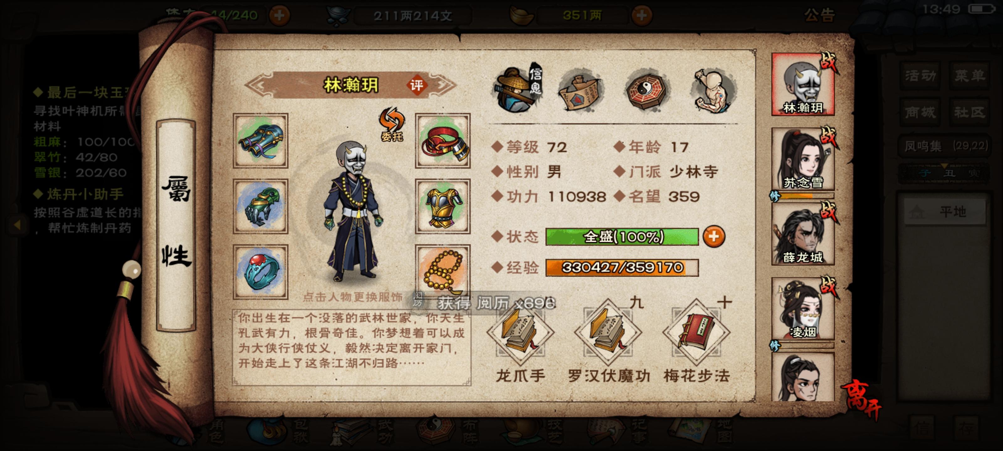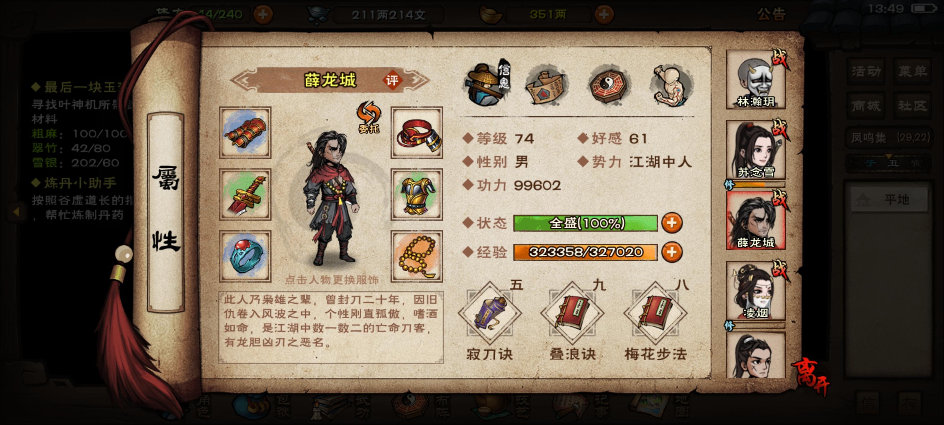 这游戏升级是真慢啊。主角玩剑的话该怎么加点呢?后期能走独狼吗?有主角后期毕业的主武技吗?开局选了太乙。不知道太乙和剑王哪个强?宠物和配饰都是怎么获得的?