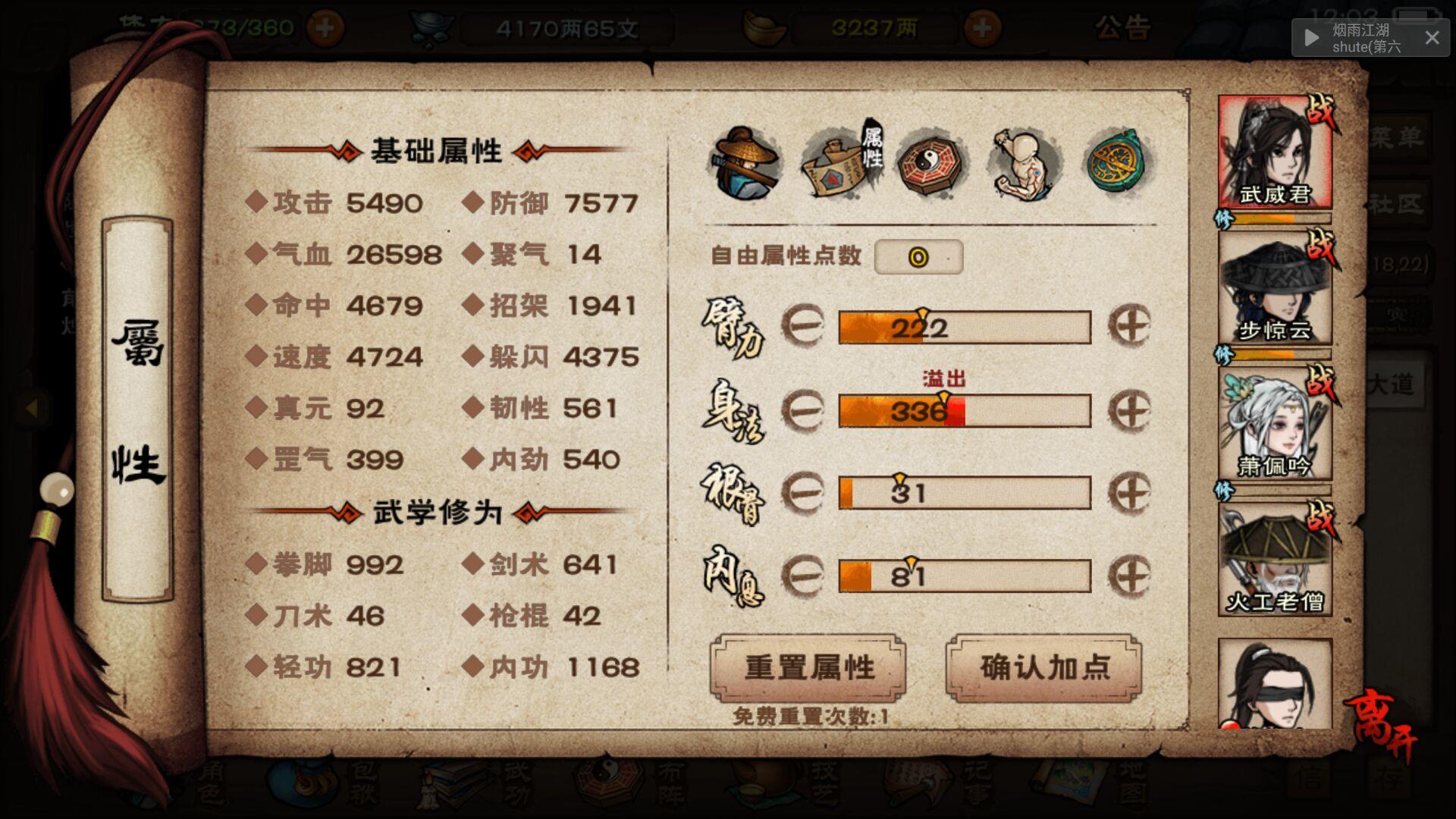 很纠结,小雪拿秀春一点伤害没有,而且还脆,我想给小雪学拳但是主角拳修600多了我想给主角拳修凑1000,我是继续用秀春还是给小雪学个拳法有没有大佬给点意见?