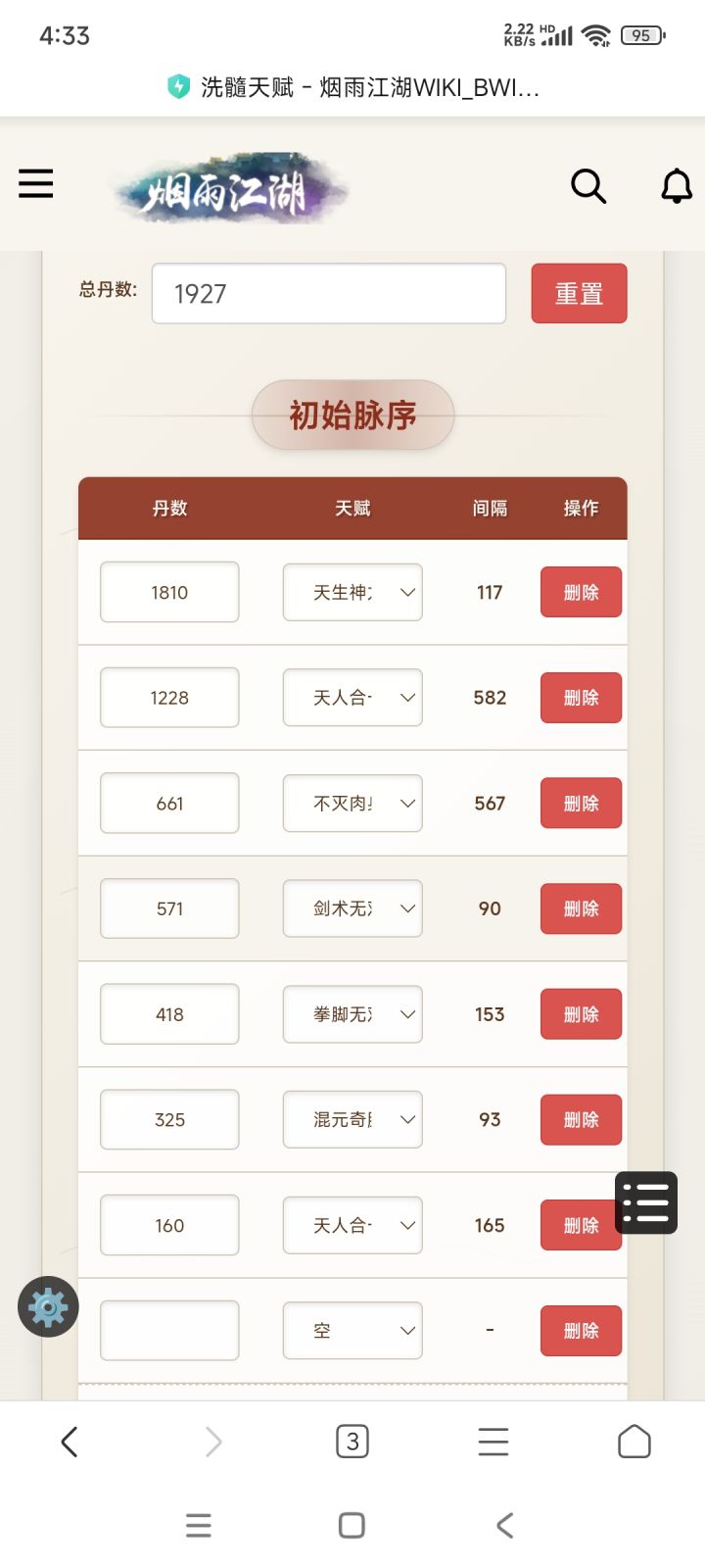 之前脉序不好为了破止开四槽了,现在攒够五千丹了,可以洗个三紫嘛