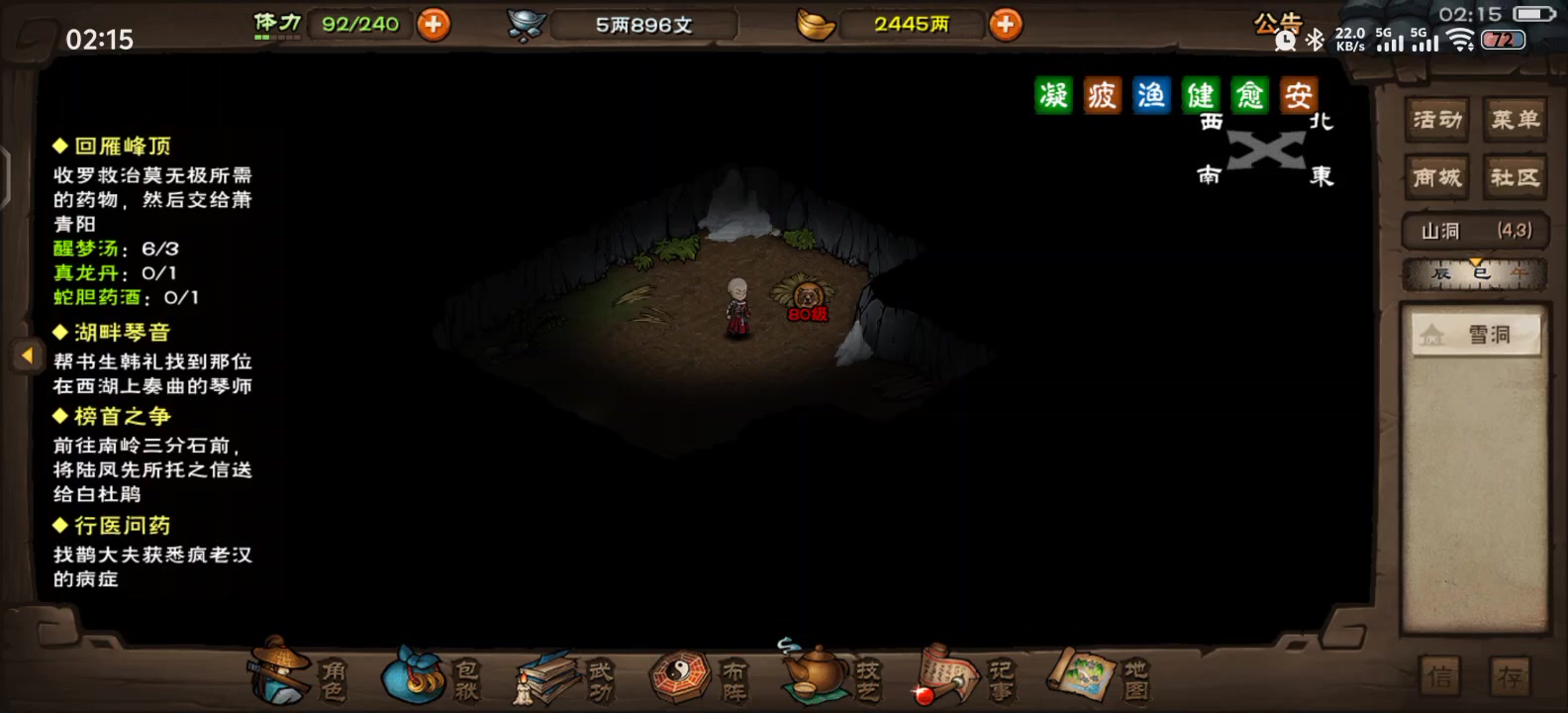 重点:❗❗烟雨钱和元宝一样不能回档❗❗(1)首先,进入『庙会』的入口在洛阳 10.18马车夫处,活动大使有庙会消息(2)地图内隐藏烟雨钱:①钓鱼🎣:福安桥上钓鱼,概率出锦鲤和烟雨钱。 ②搜索庙会地图方位 (10.6)(7.8) (15.5) (22.5) 有烟雨钱(3)进行庙会活动,和伙伴们一起吃年夜饭可获得祈愿牌,进行任务获得体力以及烟雨钱(4)算命先生,抽福签给10烟雨钱。(5)烟