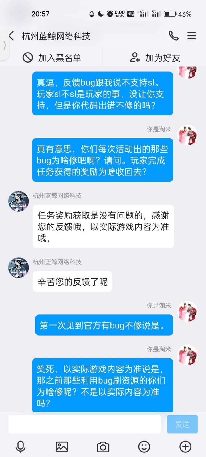 第一次见明知bug不修的官方说是之前我在论坛说的那个随机小资质丹变固定灵虚丹的事,今天又碰到了。然后我寻思,给官方反馈下吧,怎么说好歹算是个bug。结果如图,笑死我了。