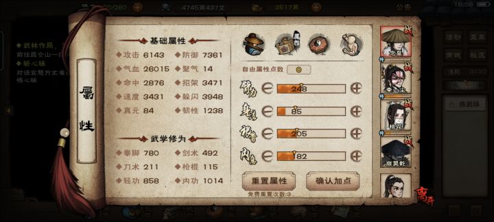 大佬们,目前破止就卡在凑1000修为这一阶段了,目前差220点拳修和100多点轻功(轻功无所谓,大不了把随从的镇派轻转过来突破了再还回去)主要是拳法,拳法还有个五毒没转过来能凑60点,每天固定的修为获取只有泰山木人+6拳脚,极乐谷切磋+1拳脚,大昭寺+1拳脚,还有零零散散的进阶上乘武学突破,就没了,还有没有什么方法能凑凑,能凑一点是一点了