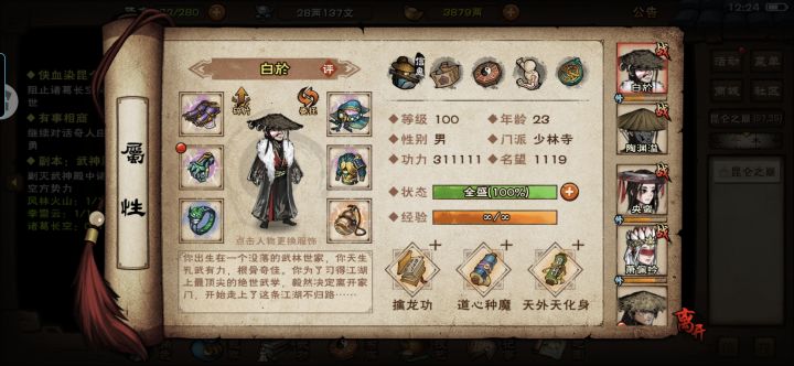申明:本篇只说下叛门路线和一部分值得注意的点,更多细节需要看“烟雨江湖wiki”(新人必看,上B站或者用浏览器搜)。千机遗迹活动限时开启期间,通关3次后,第4天通关进阶关卡,拿原型傀儡80-90级甚至一些百级副本,主坦推荐无暇棍法主角升百级破止需要剑修、内修、轻修要各1000。随从升百级需要天赋开3槽,经脉12正经全通。判门前可以多学点门派的套路,内功和轻功,后面卡800内修时,把随从内
