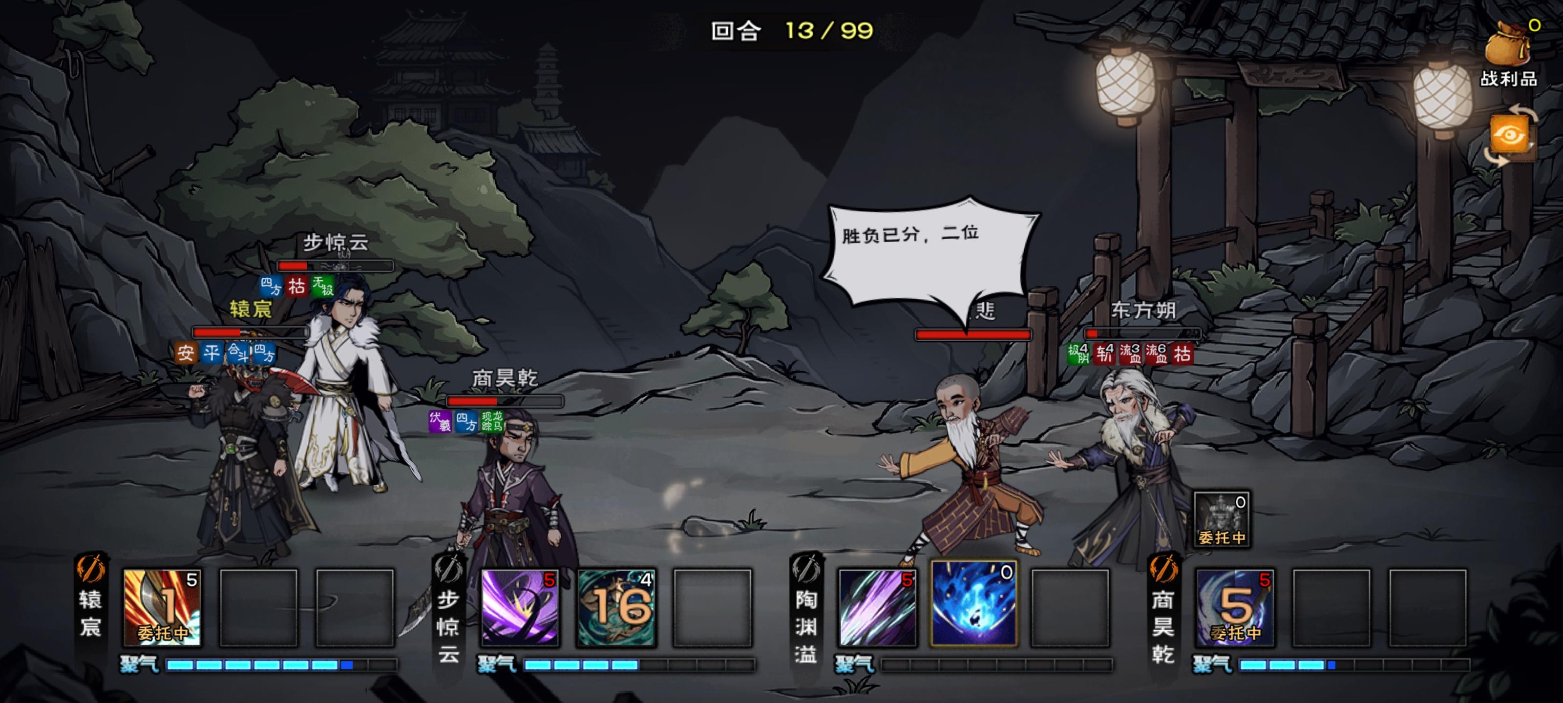 商:太虚归元,乾元9,梅花。僧:无暇10,龙象11【青娥8】,踏浪10丐:烈阳10重,离火10重【长生7重】,梅花主角:太阴9,道心十,踏月5