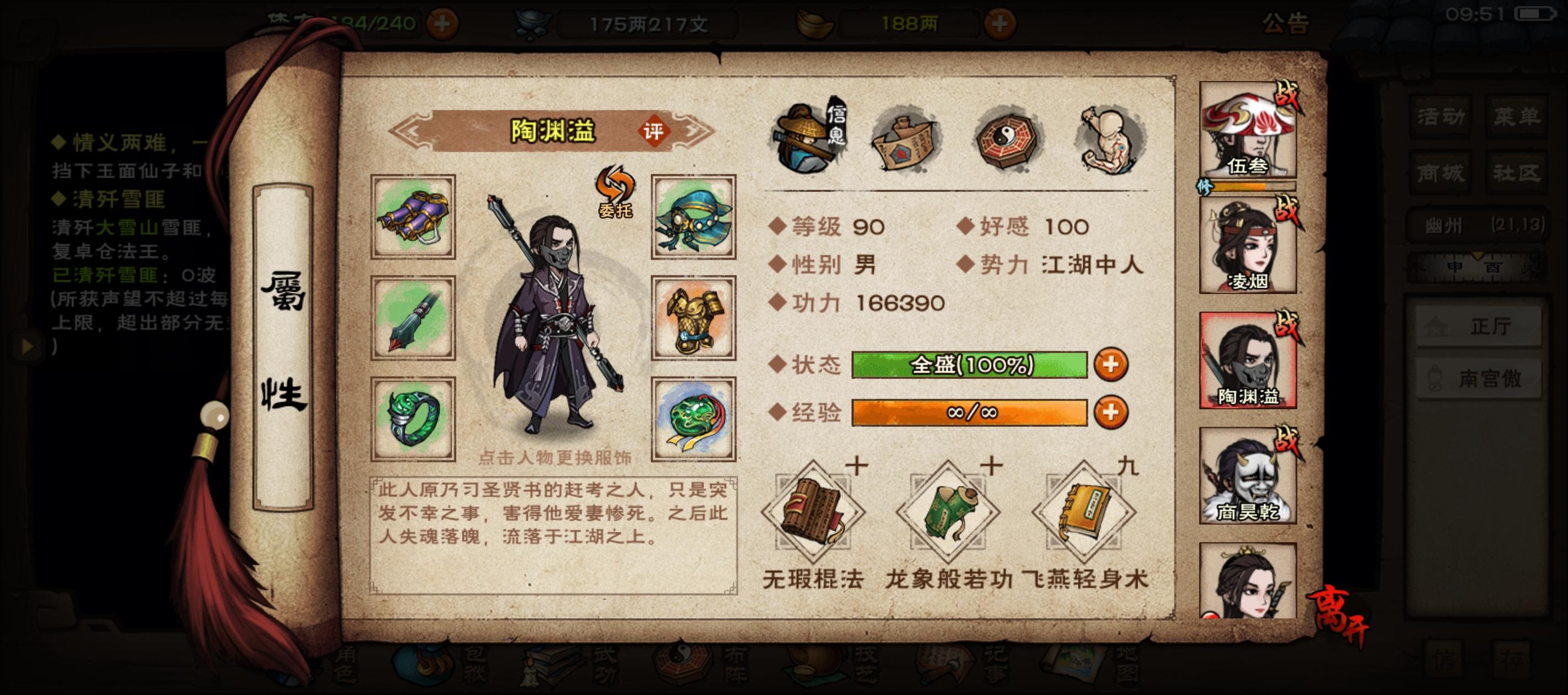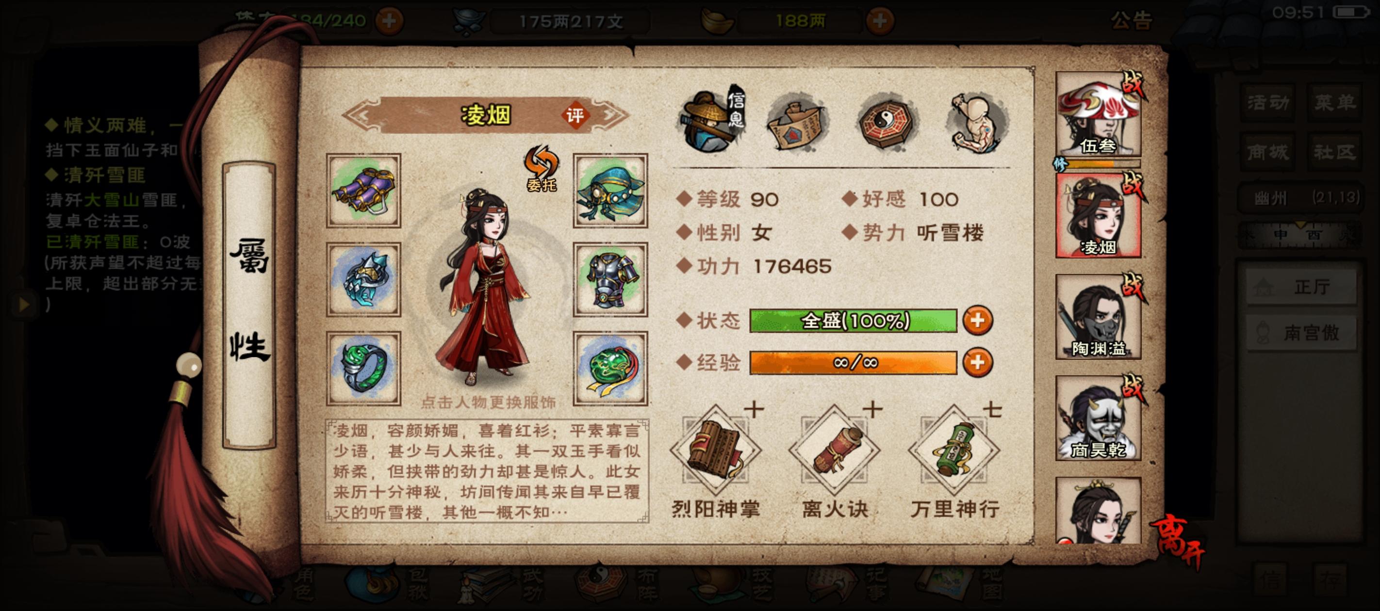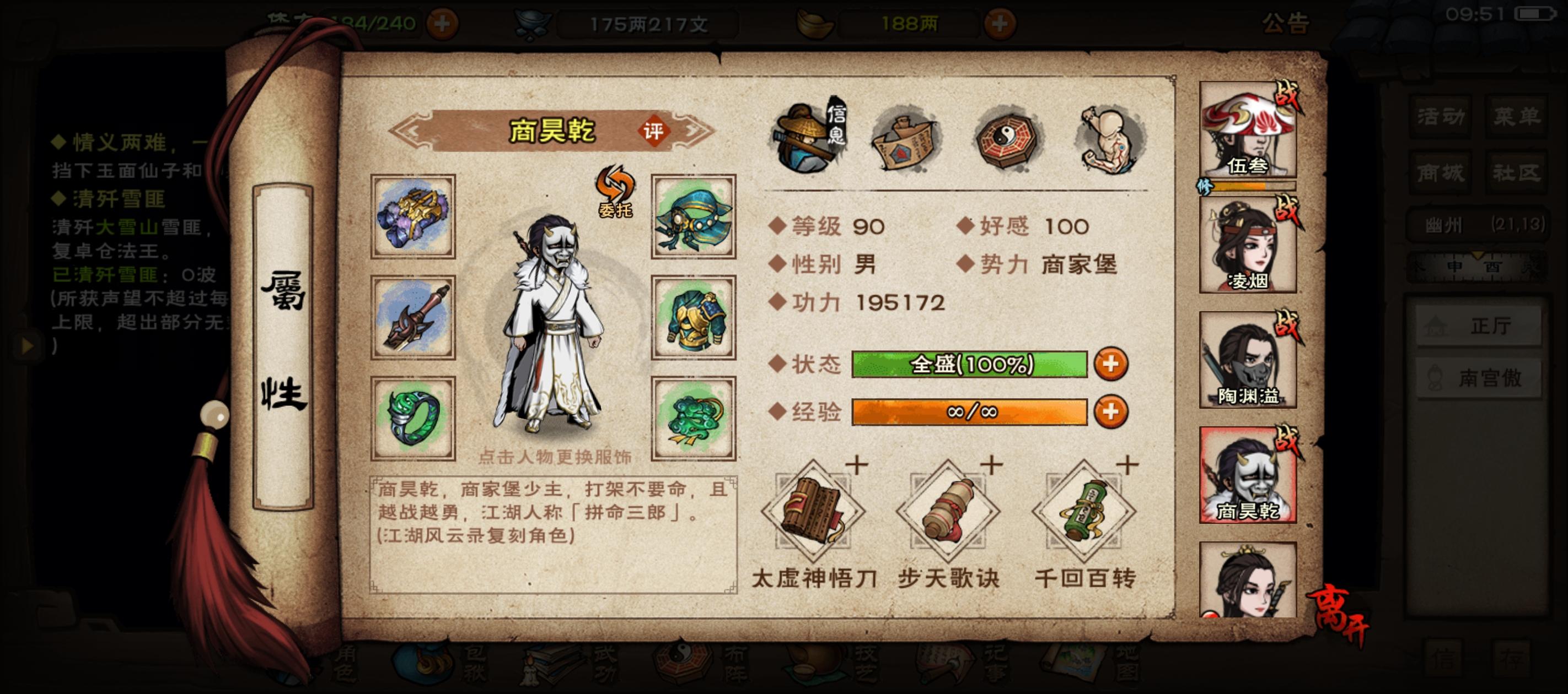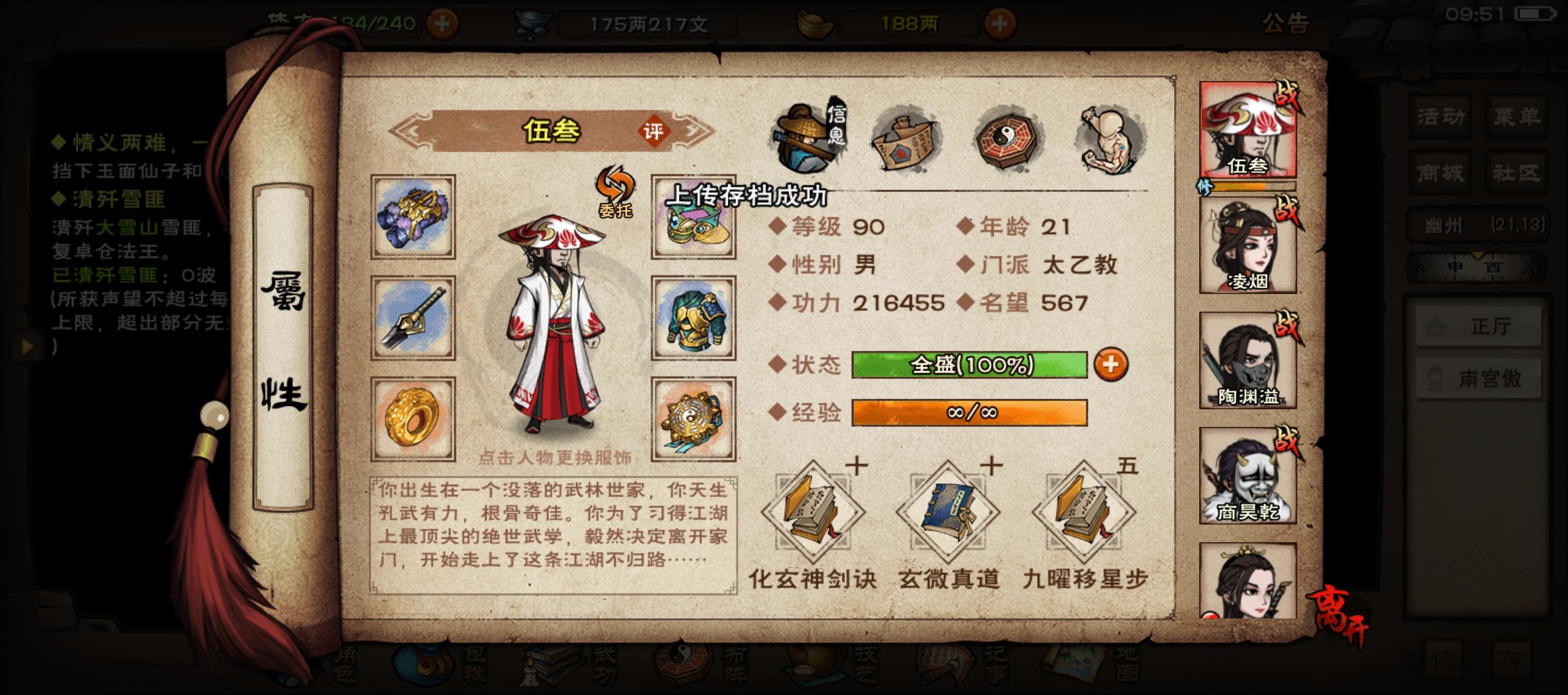 车泥丸9个。天一神功残页8张乾元商在升着。。。。月卡玩家,马票濒临氪不起。心中有疑惑,阅历似乎不够,能买的都买了。赏花,切磋,武馆,真仙......差个剑随,元宝不够,只能靠白嫖。目前打不过燕王,无法开荒成功