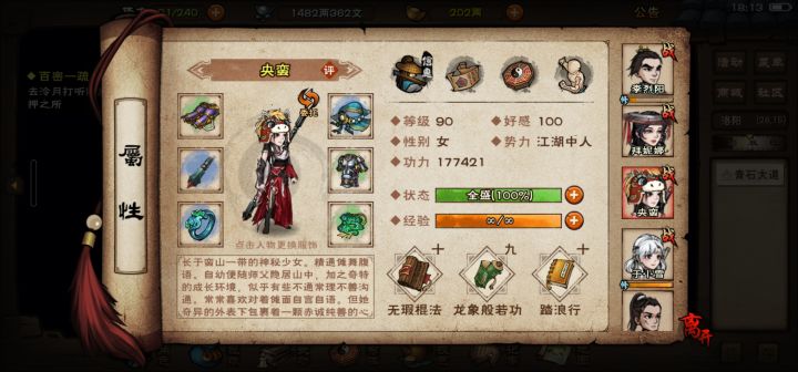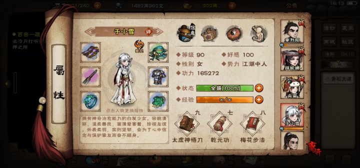 这两天看了看论坛好像没发现比我练度低的,试了试没想象中那么难,总战力135w左右,因为之前收菜没意思就半退游状态就上号做做恒山的派遣。基本新东西什么也没有,之前总坛过了但没续月卡没有功法和秘籍,恒山的也只有一本羽化,想试试新副本所以直接买的清虚丹突破的老一老二血刀羽化带飞,就揽月出来后控了下技能,别的都是挂机一把过,秋山君还没死仨随从就死了,然后血刀轻松拿下老三确实费点劲,但我