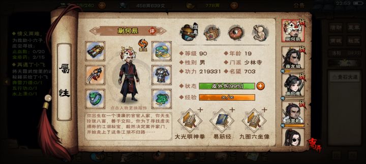 金钟没满,还要几个秘技没拿,没进达摩院,现在打不过燕王,装备没打吸血,是继续少林熬着还是去极乐
