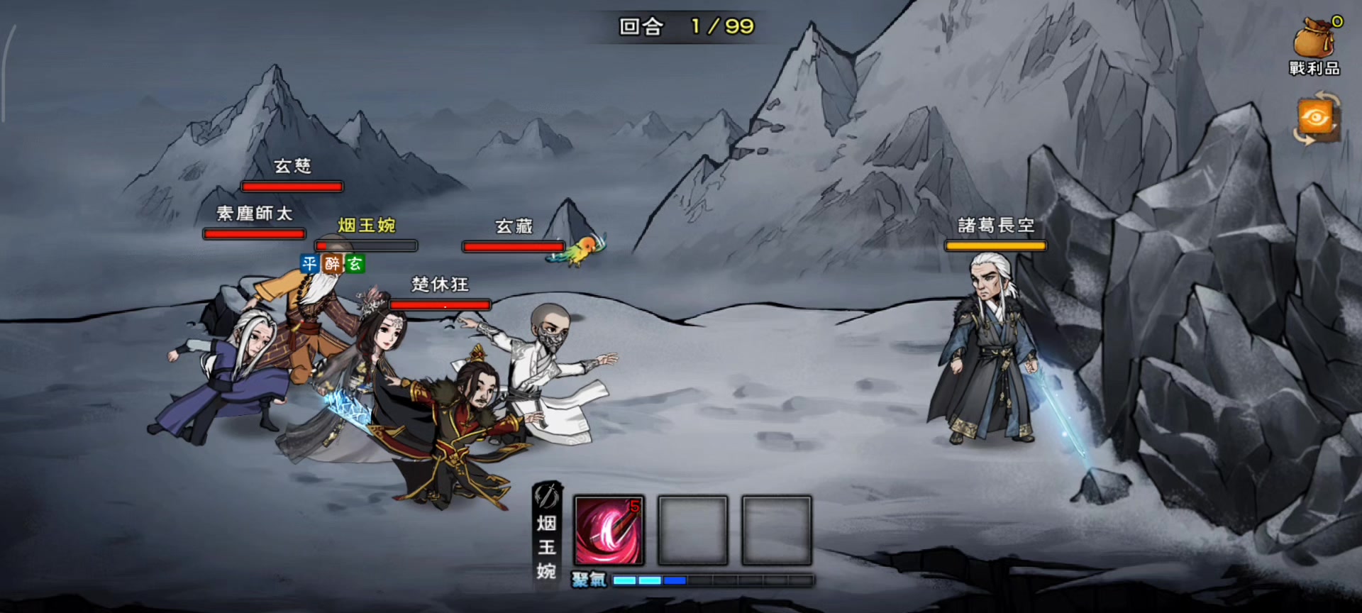 主角:血魔,天一,踏月 商:寄刀,天蚕,天元 南知意:无暇,归元,凌波 央蛮:西子,长生,身形 buff:弹琴攻,符攻,三丹,酒,石 四方阵112