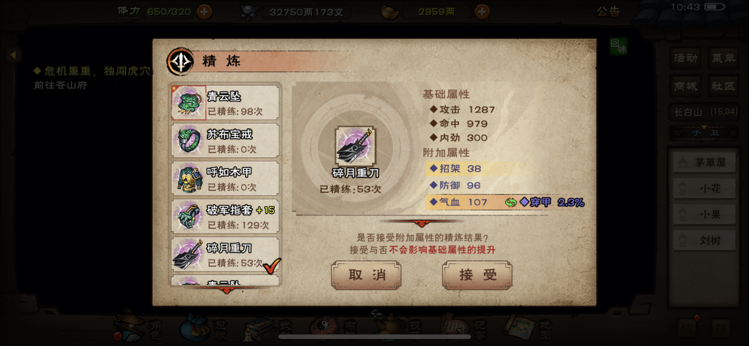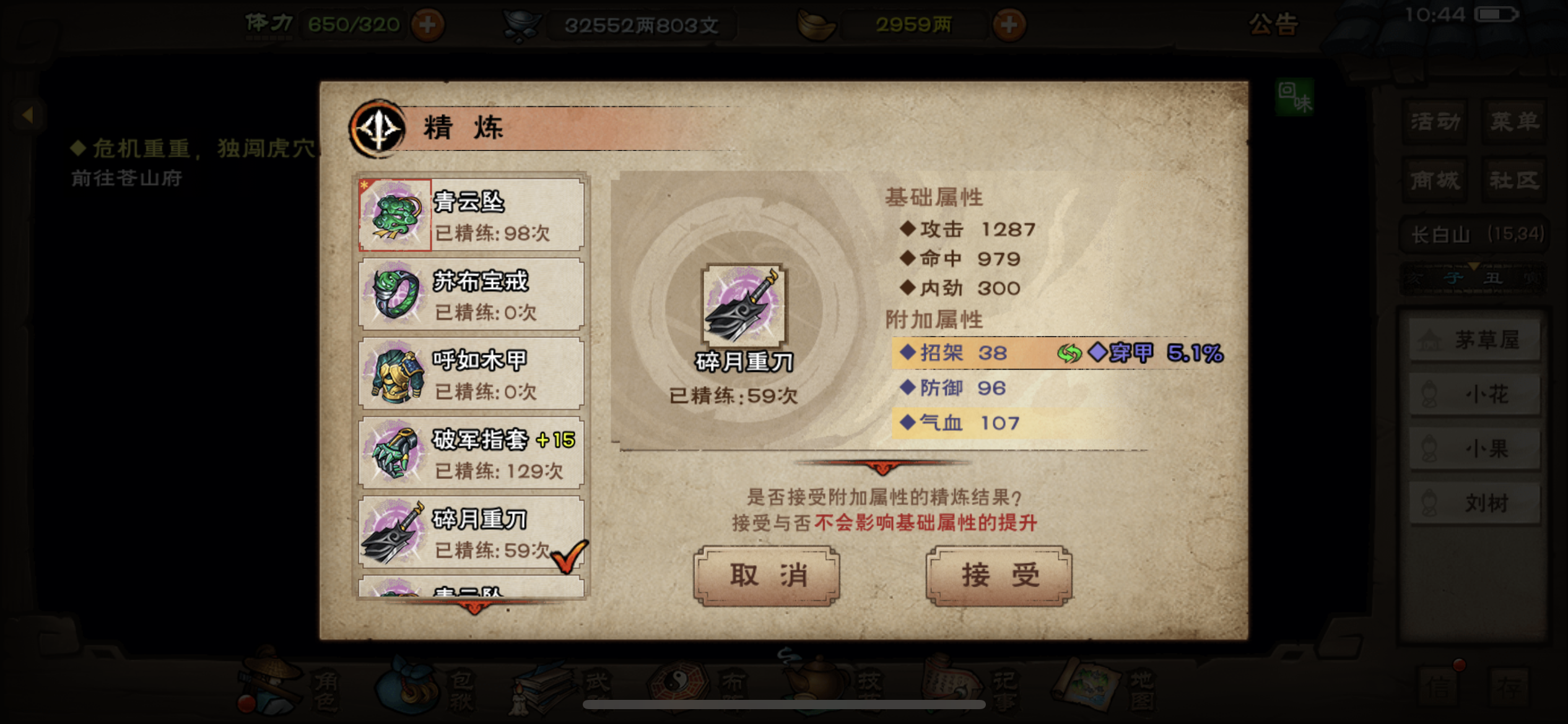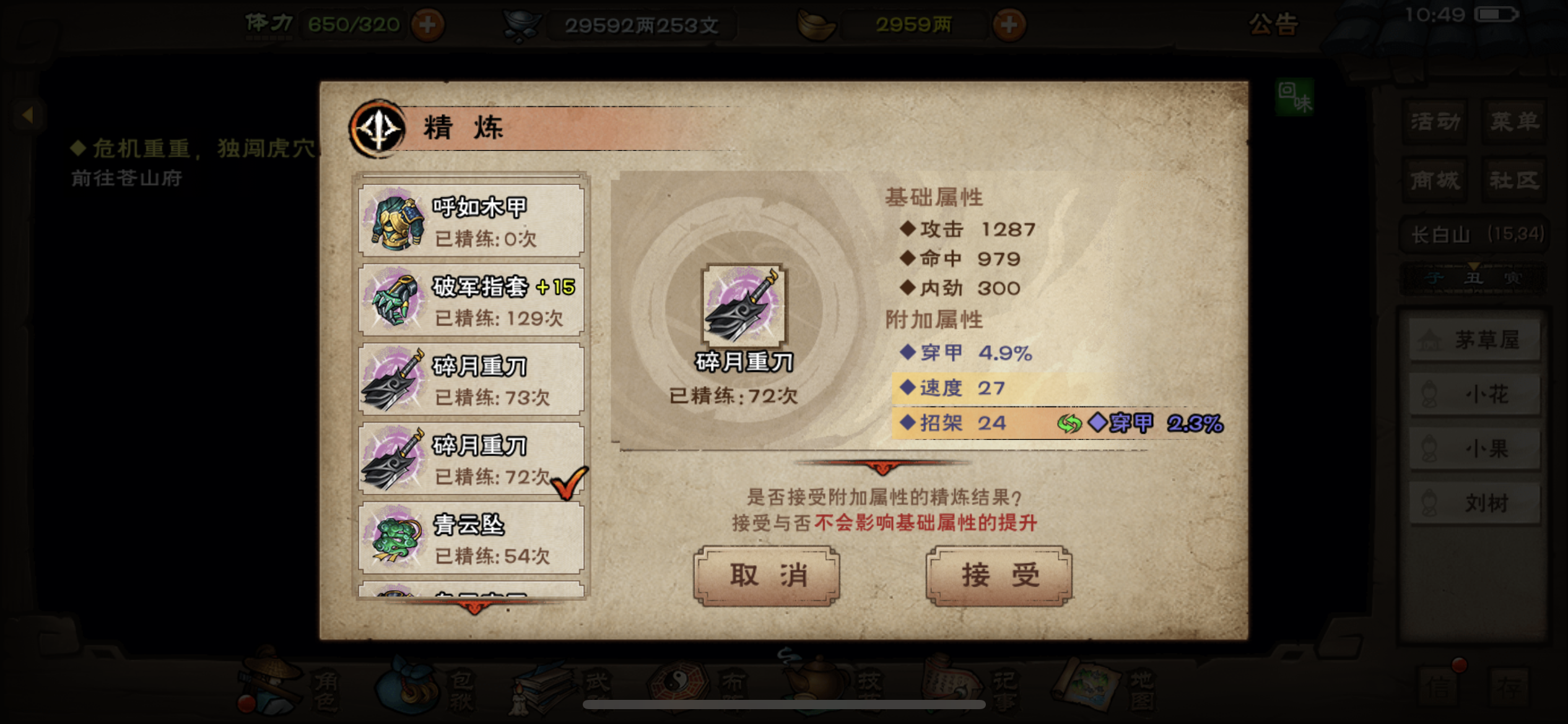 • 已知:1.同级同名的装备连续10件没紫则下一件必出紫,即保底紫,该规则无地区限制。2.保底紫直接插入当前序列,同级同名的保底紫始终是同一件,可能在任意位置,只要满足条件1。3.南阳打的装备大概率为绿蓝。• 那么:通过南阳打10件绿蓝装,再到泠月/龙泉可打下一件保底紫装。通过这个方法可以查看9*2=18件保底紫。• 说明:方法并非原创,已有大佬提出,但使用的人比较少,楼主发帖再次说
