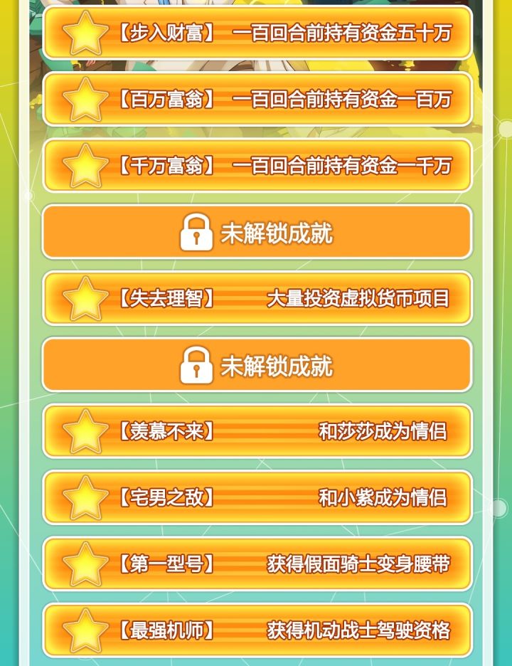 二号成就:[百万富翁]100回合前持有资金100万及以上