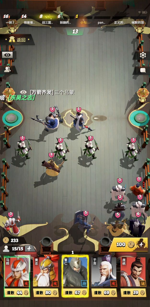 差一把大将军的局 九单位凑齐五虎加桃园,决胜局来个甘宁带着接近400攻击的马超冲就完事了