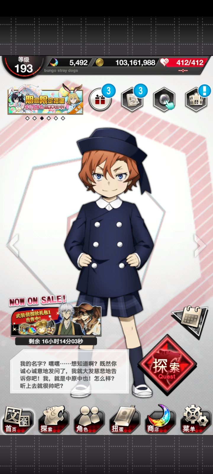 感觉这个游戏抽奖体验好好(「・ω・)「嘿是国服,只翻到一个官网那应该叫官服吧,b站服b站没找到下载渠道qwq我觉得可能没那么多肝就没下外服,顺便问问谷/歌商店日区和美区的文豪迷犬是一个服吗?然后台服和这俩有区别吗?Ⅰ之前只是听过有这游戏但我没有下载或者搜索,然后那天首页刷到相关视频了:!看起来好简单,好适合手残党,然后我就下载了_(:D)∠)_Ⅰ第一抽(新手引导)是SR与谢野小姐|・