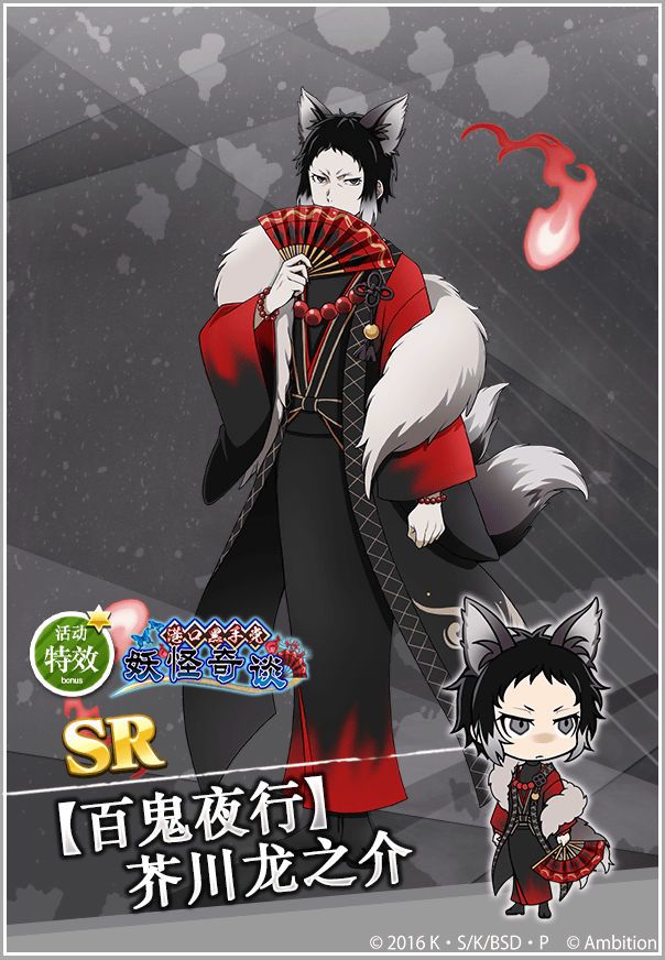 【活动预告】2.5周年庆典!【百鬼夜行】主题,大异能节和豪华福利,即将开启!活动一:收集兑换活动「港口黑手党妖怪奇谈」活动时间:2月15日16:00~3月7日12:59活动内容:活动期间通过指定副本的话,可能获得活动点数和活动道具。在活动期间内收集并兑换获得奖励吧本次活动有机会获得以下限定角色:SR【百鬼夜行】芥川龙之介SR【巫女】樋口一叶活动二:期间限定&阶段上升扭蛋~妖怪与阴阳