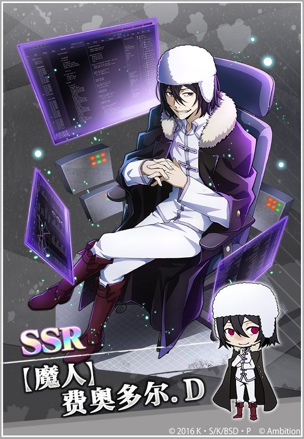 活动:SSR【最年轻干部】太宰治登场,黑之时代角色出现率UP!活动时间:1月16日12:30~1月23日12:59(8天)活动内容:黑之时代集结的三人,太宰治、织田作之助和坂口安吾,限定扭蛋登场!本次活动有机会获得以下限定角色SSR【最年轻干部】太宰治SR【Lupin】织田作之助SR【港口黑手党】坂口安吾【关注我们】如果您喜欢我们的游戏,请关注官方网站、官方QQ群等获取更多游戏动