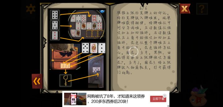 这是我玩过最没什么逻辑的游戏,物品不给提示,没有名称标注。越到后面的关卡这个现象越严重。最不能理解第四关钟表和五角星机关是怎么打开的,我解的时候就是蒙的,一个个试的,提示根本派不上用场,是我不配了,下头,告辞!