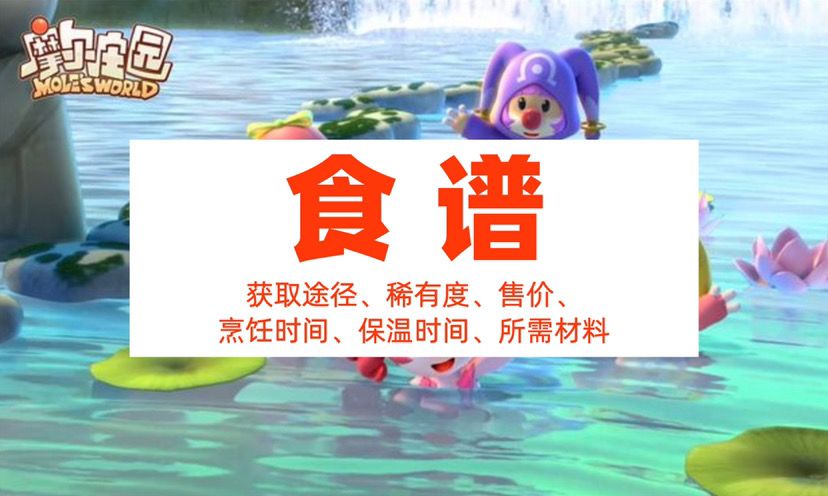 摩尔庄园手游食谱:按照烹饪时间⬆️ (火的大小每个人可能会有所差异,比如大火有些人可以有些得中火,这个你们也可以及时补充,我再修改) 菜谱名字|餐厅售价|烹饪时间|保温时间|获取途径|稀有度|所需材料 🌟毛毛菇炒蛋:208|30秒|2分钟30秒变凉|研究菜谱|4|毛毛菇*3、鸡蛋*3、鸭蛋*2、大火 🌟拉姆小馒头:71|30秒|2分30秒变凉|SMC奖励|2|鸡蛋*2、鸭蛋*1 🌟咕噜果奶酥:21