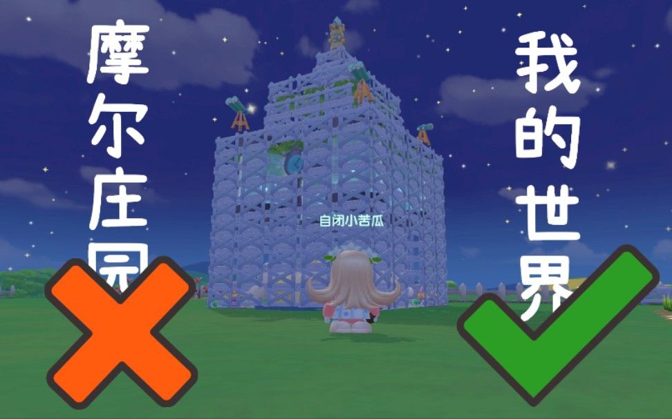 【摩尔庄园】把摩尔庄园玩成了我的世界?|蓝色钟塔装修分享+教程