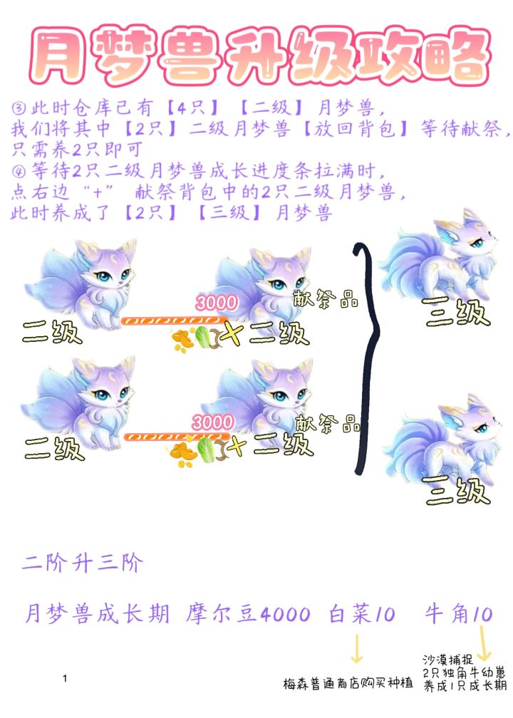 【月梦兽】捕捉地点:沙漠捕捉数量:8只——————————————————————————✅一阶升二阶月梦兽幼崽摩尔豆2000奇异果✖️10巨大苹果✖️10 ✅二阶升三阶月梦兽成长期摩尔豆4000白菜✖️10牛角✖️10✅三阶升四阶月梦兽成熟期摩尔豆8000巨大苹果✖️20牛角✖️10 #摩尔庄园